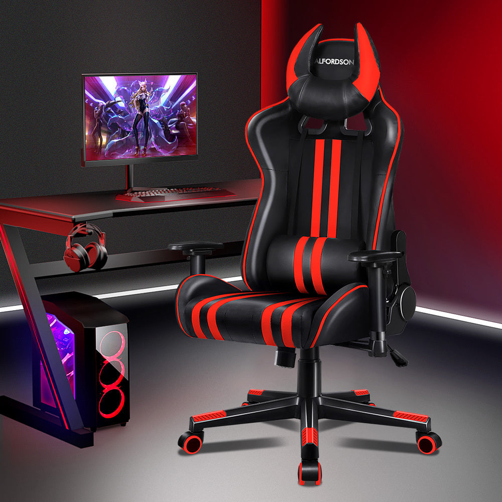 ALFORDSON Gaming Chair Office Racing Seat Executive PU Leather Computer OXEN Red