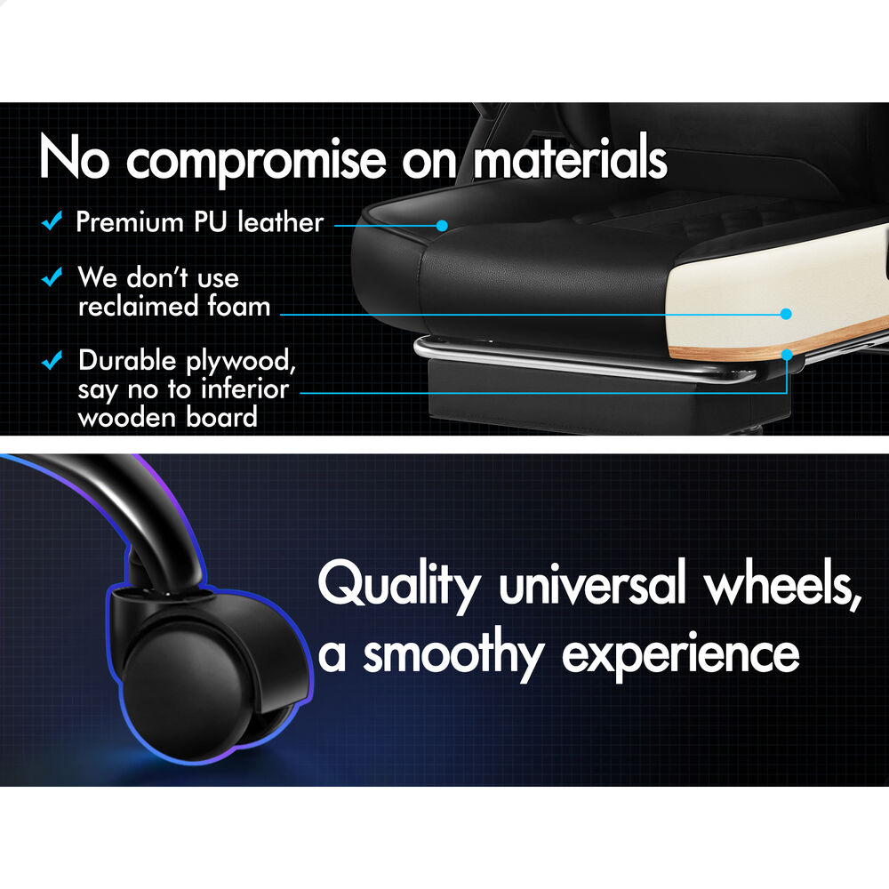 ALFORDSON Gaming Office Chair Massage Computer Footrest Seat Leather All Black