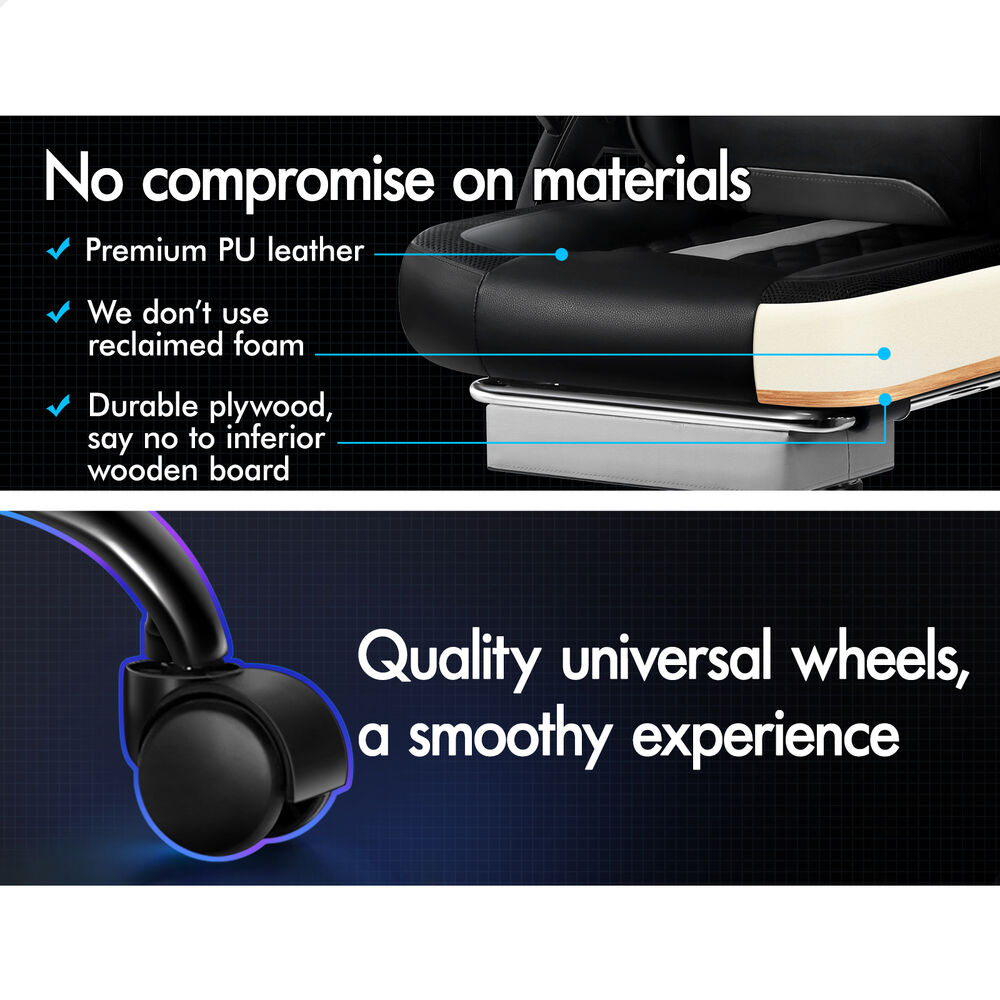 And unlike some other sellers, we have no compromise on materials used. We guarantee that no cycled foams are used, no backrest is cut short or narrow to save money, and no seat foam is cut thin to save cost.