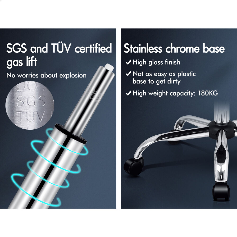 A stylish chrome base with TUV certified casters, Intertek approved linen fabric, SGS approved Gas-Lift system and tilt function, delivering absolute five star luxury. Combined with comfortable padded armrests that give the style and comfort you need. An elite in quality and design, your solution to true comfort.