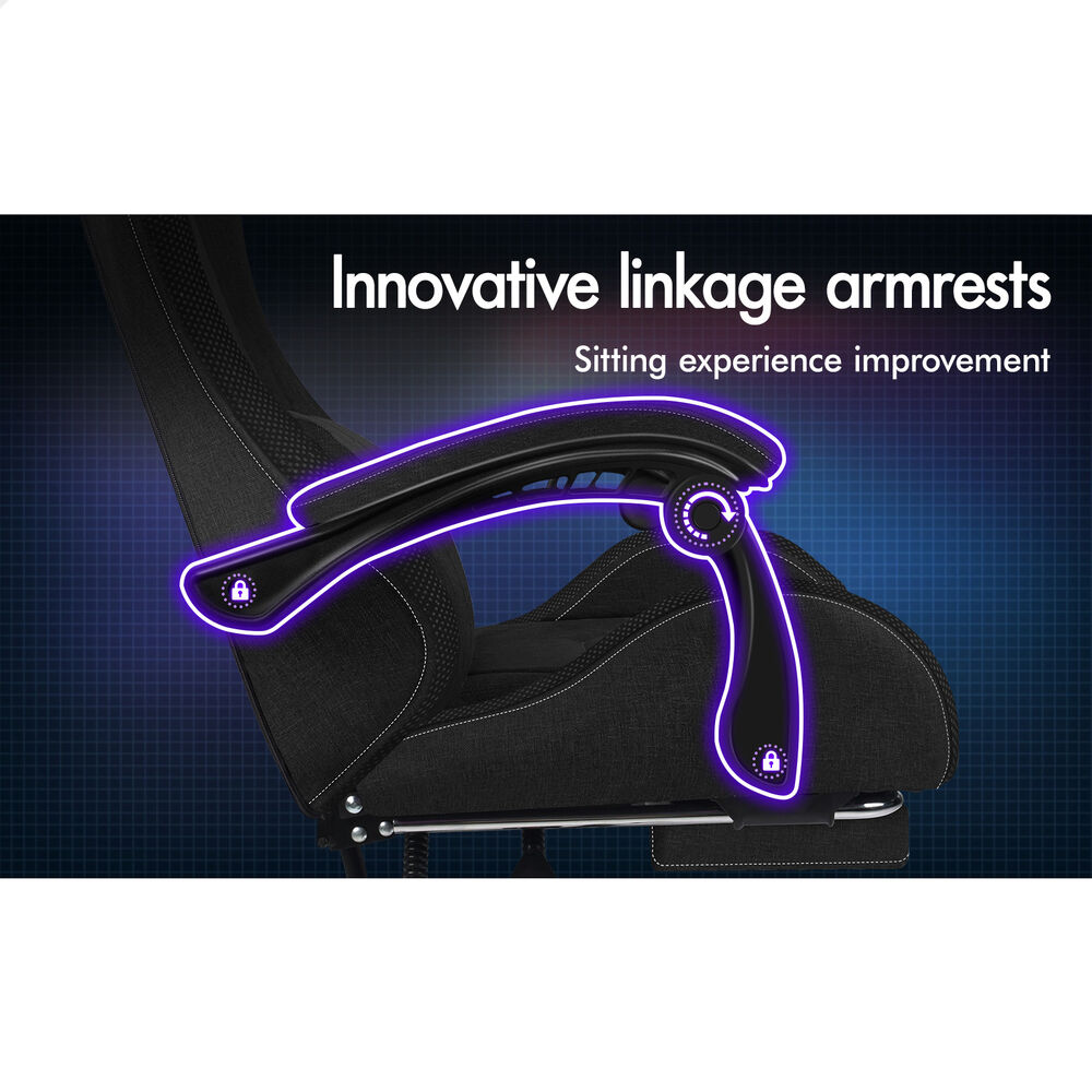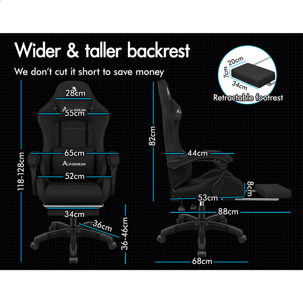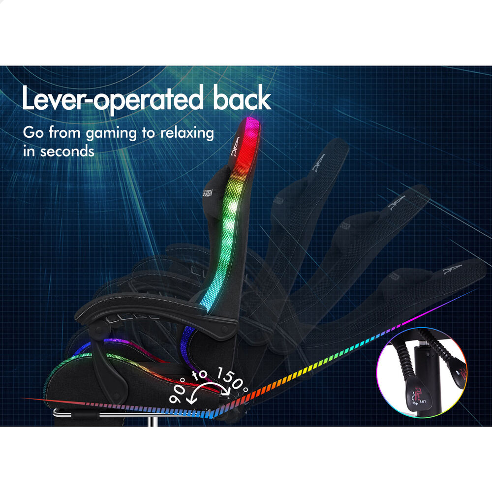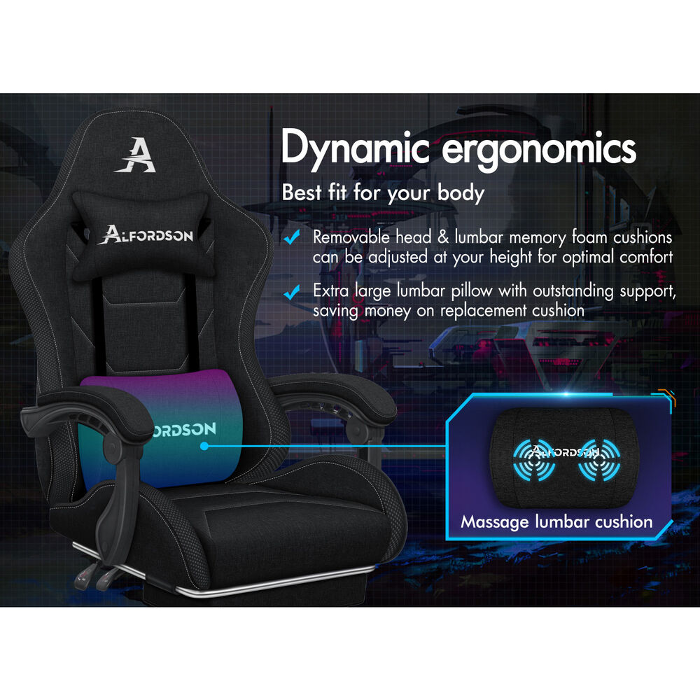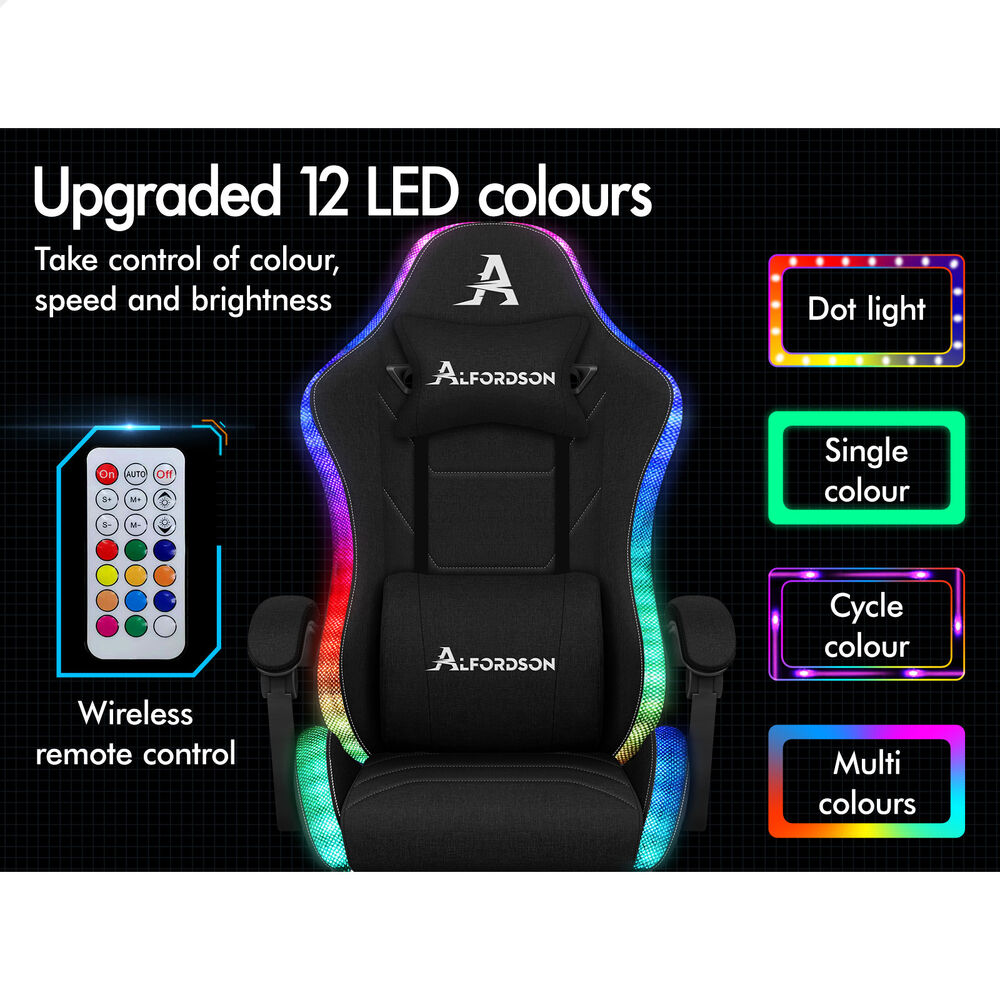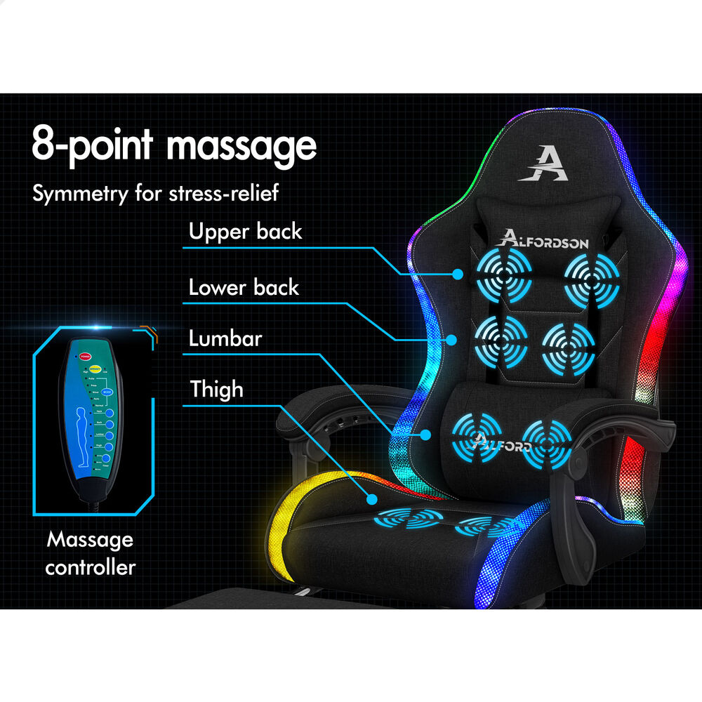 ALFORDSON Gaming Chair Office Massage 12 RGB LED Computer Seat Fabric All Black