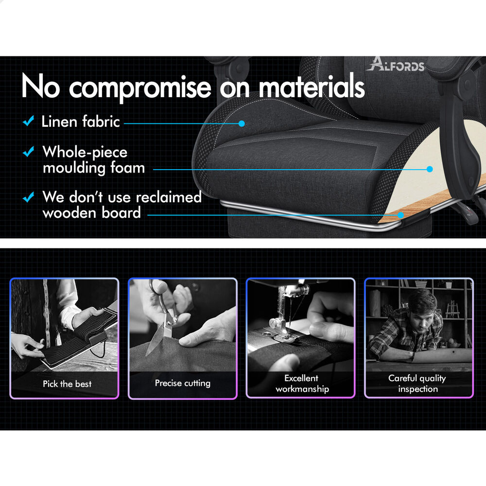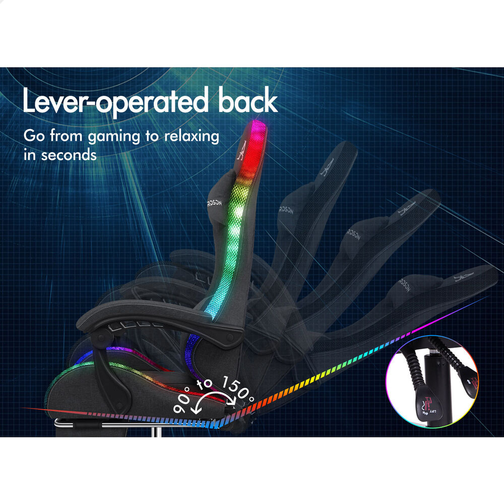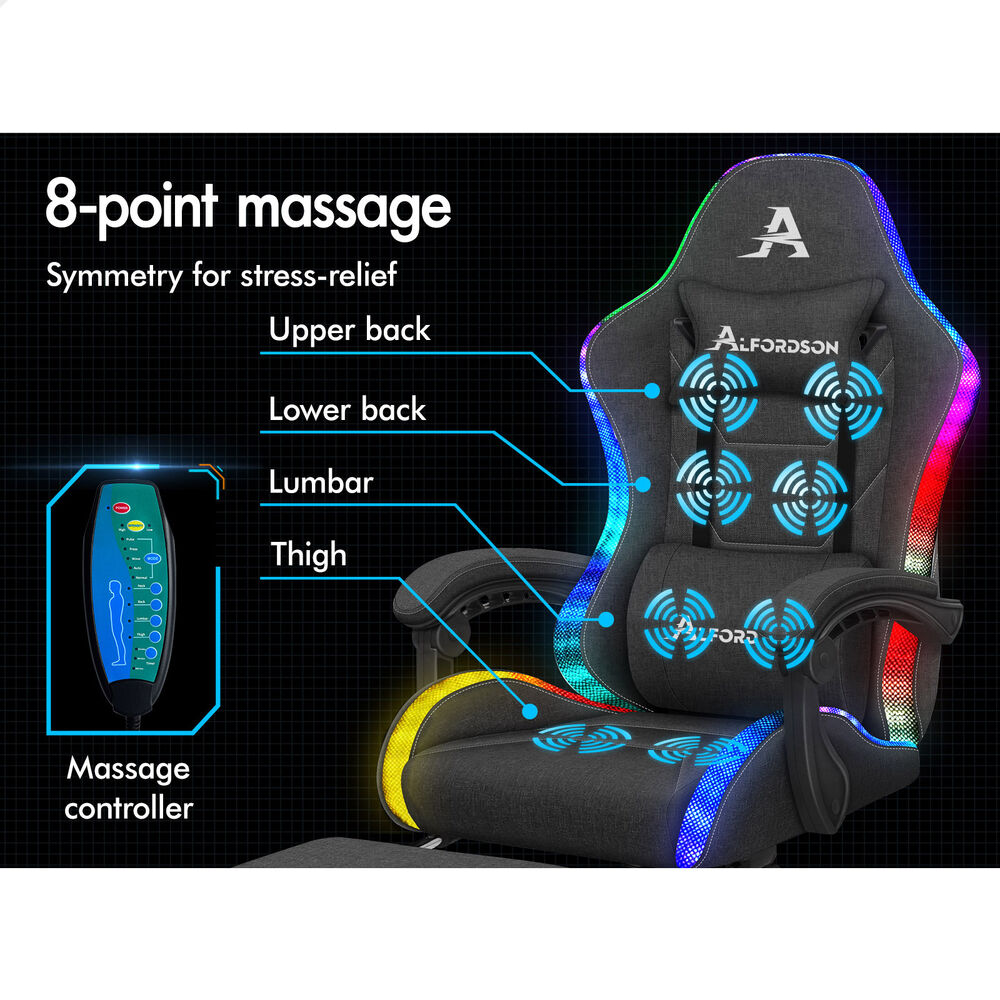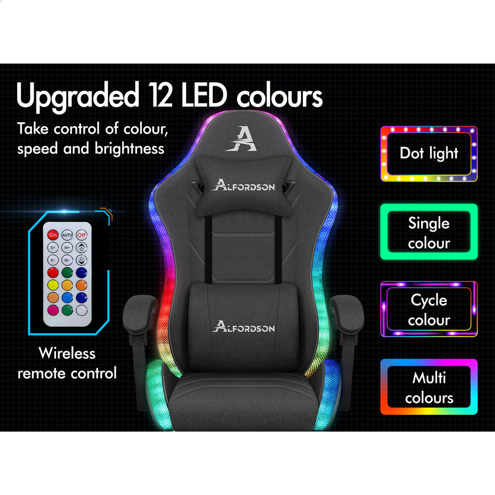 ALFORDSON Gaming Chair Office Massage 12 RGB LED Computer Seat Fabric Dark Grey