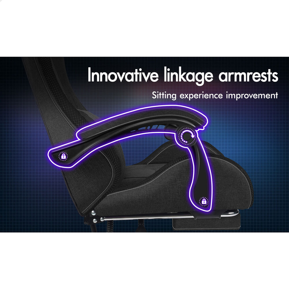 Advanced RGB LED lighting design – With 12 colours of LED and multiple light settings, this ergonomic gaming chair comes with hundreds of lighting modes, providing a unique and aesthetic glow to your gaming setup. Upholstery crafted from premium linen fabric and generous foam paddings ensures optimal durability and easy cleaning.