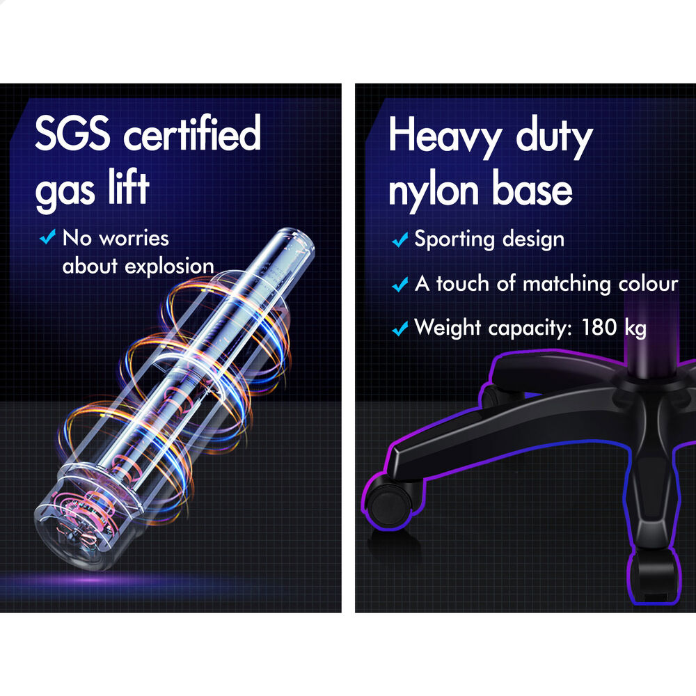 A stylish nylon base with TUV certified casters, Intertek approved PU leather, SGS approved Gas-Lift system and tilt function, the gaming office chair is sure to deliver absolute five star luxury.