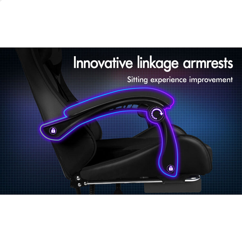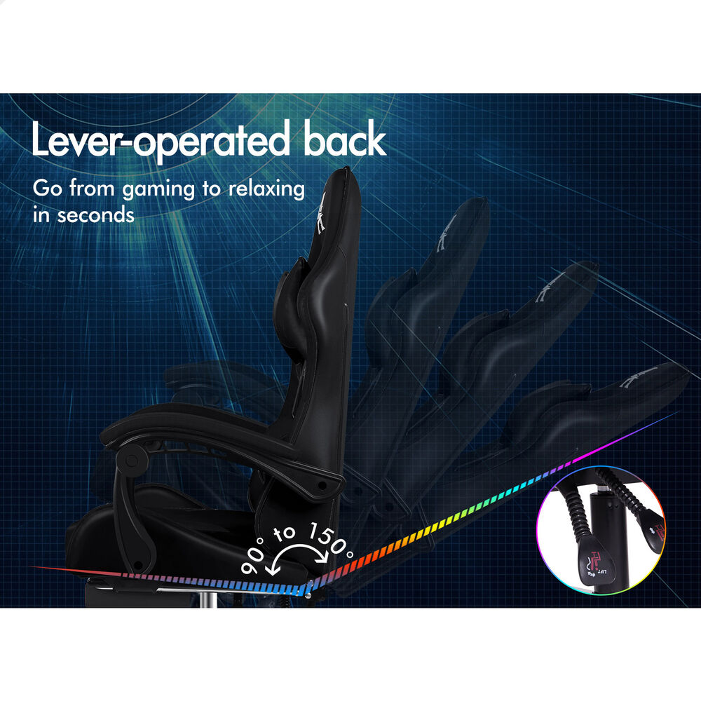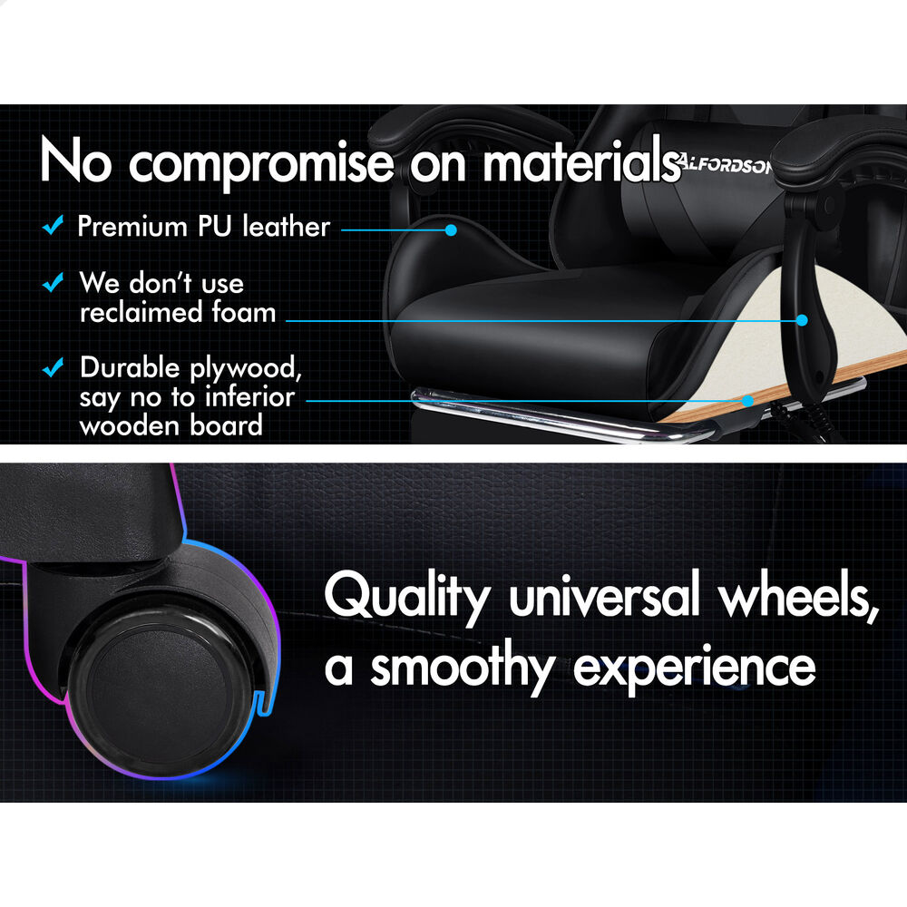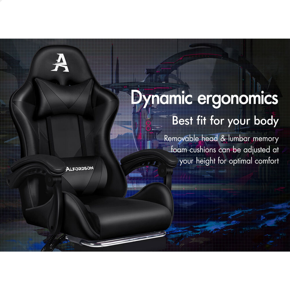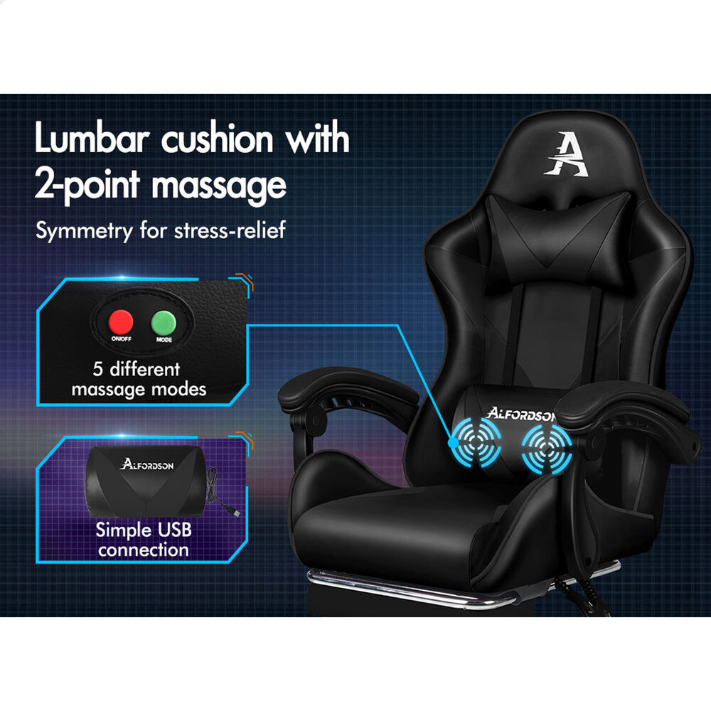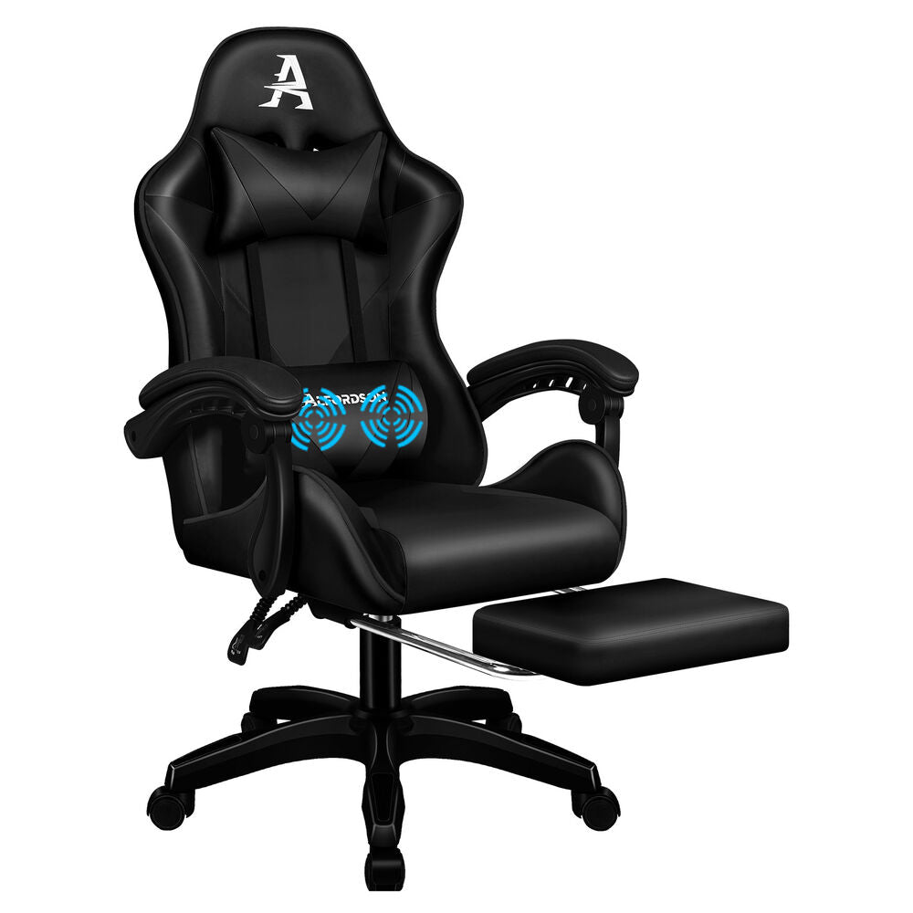 ALFORDSON Gaming Office Chair Massage Computer Footrest Seat Leather All Black
