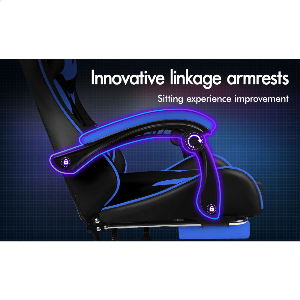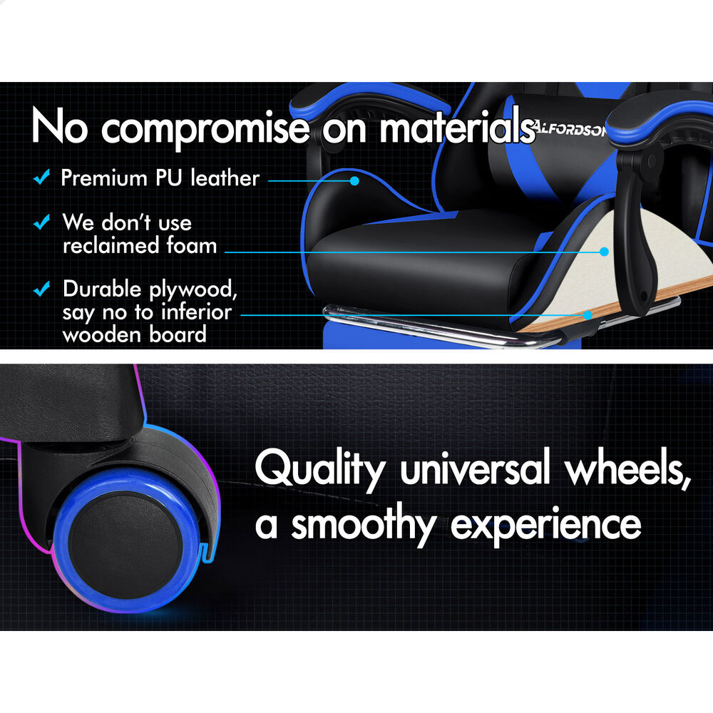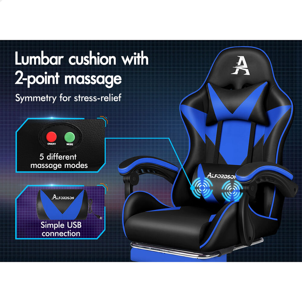ALFORDSON Gaming Office Chair Massage Computer Footrest Leather Black & Blue