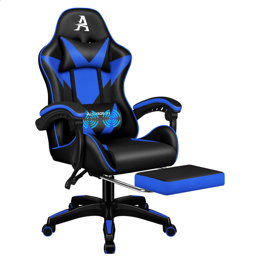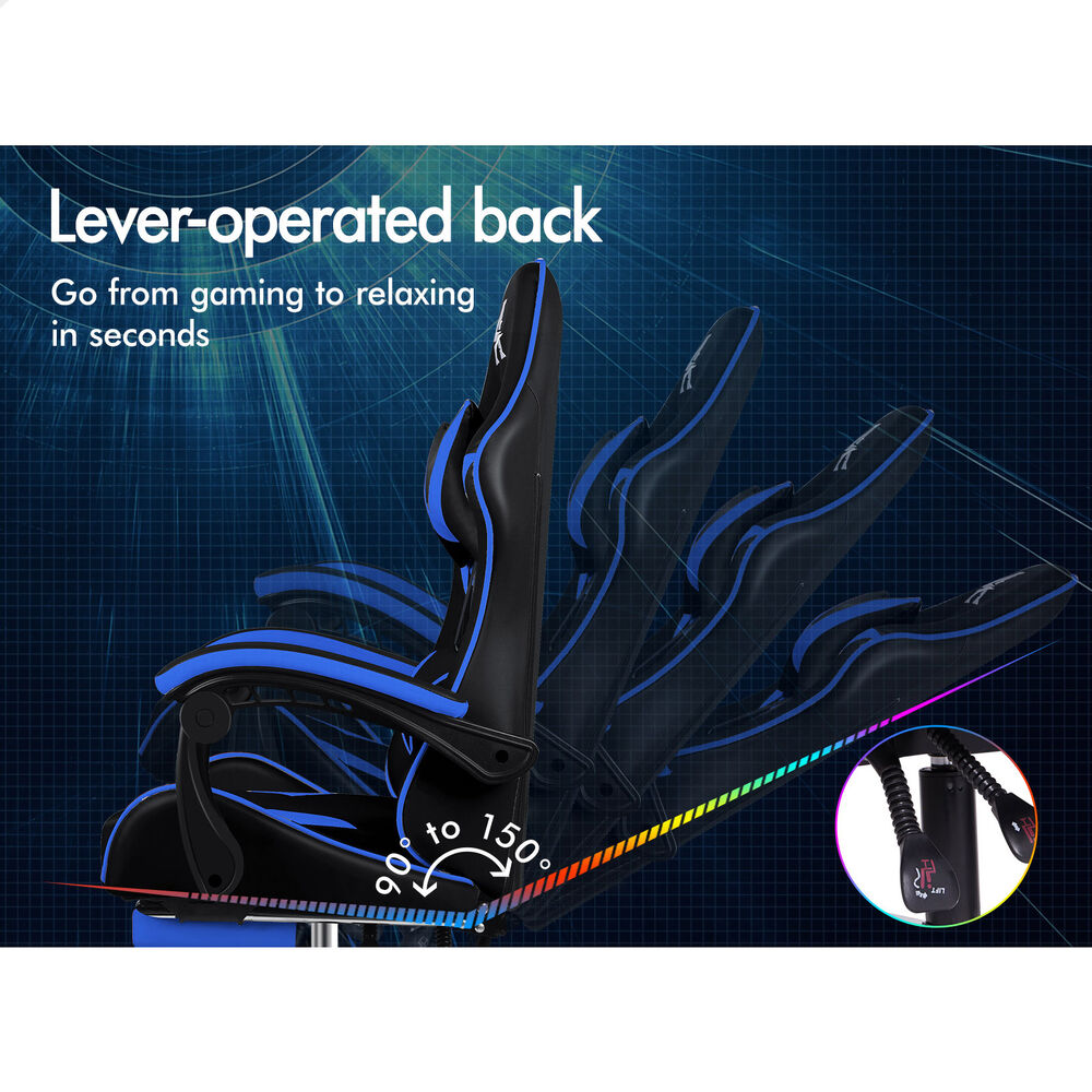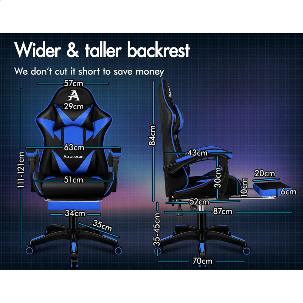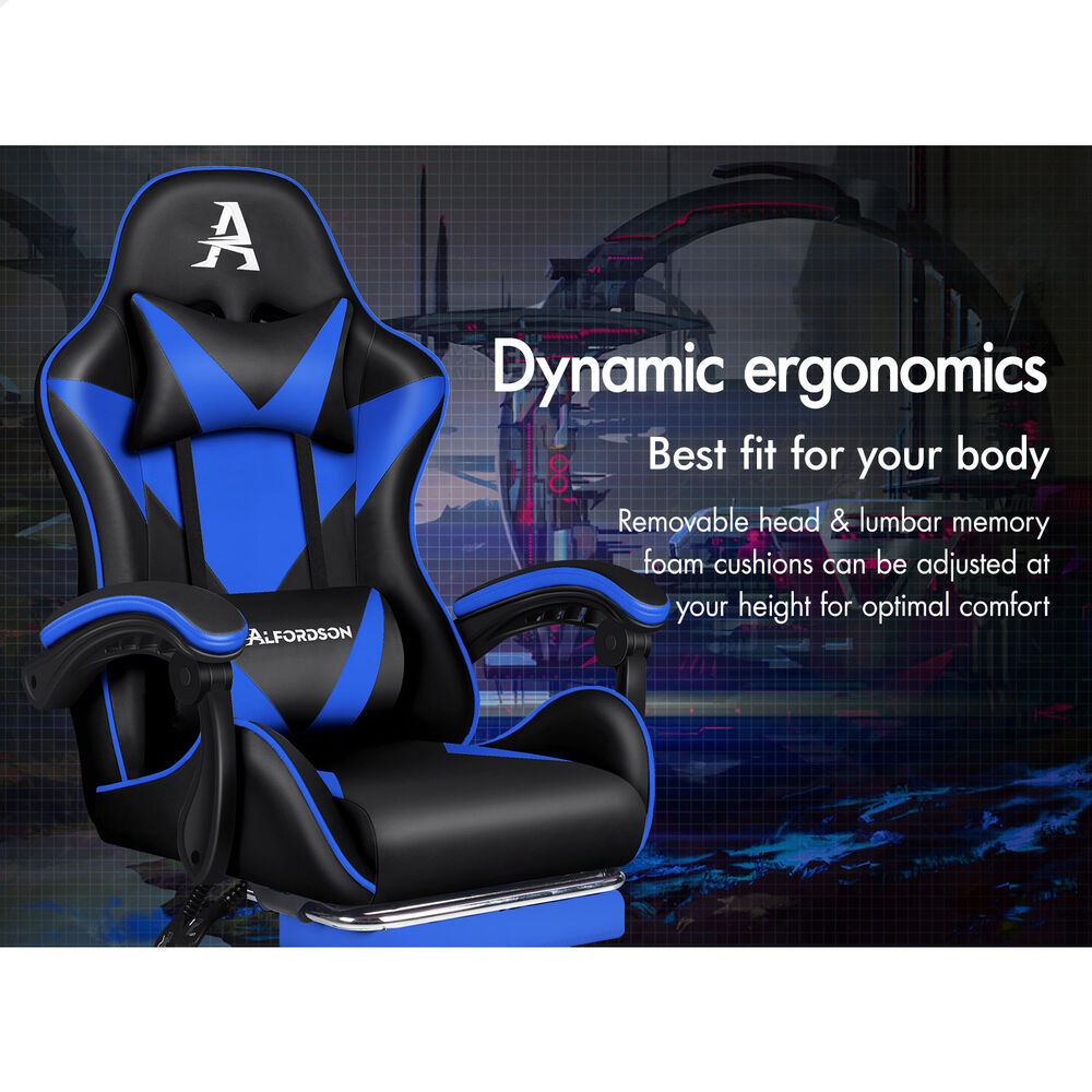ALFORDSON Gaming Office Chair Massage Computer Footrest Leather Black & Blue
