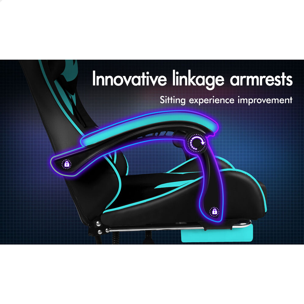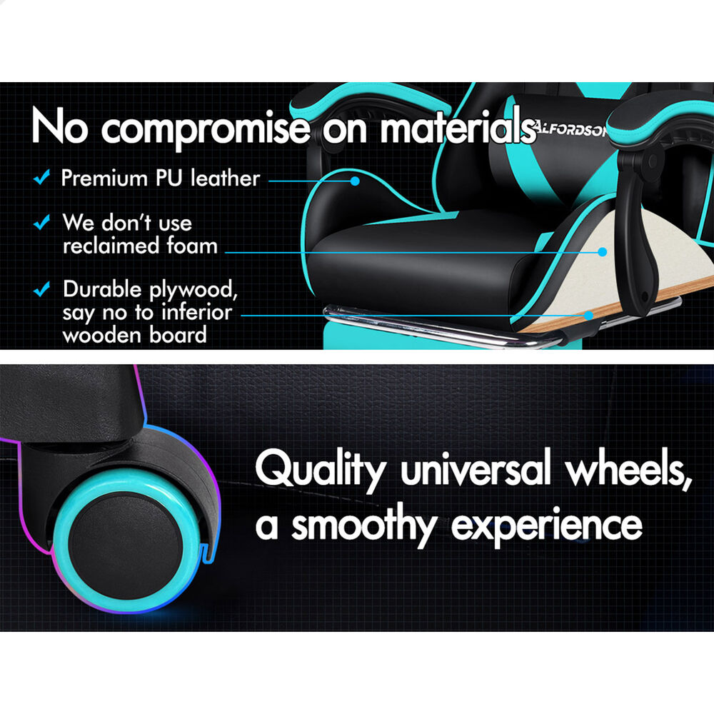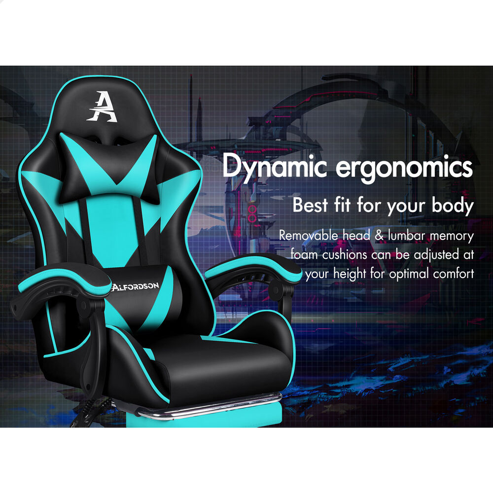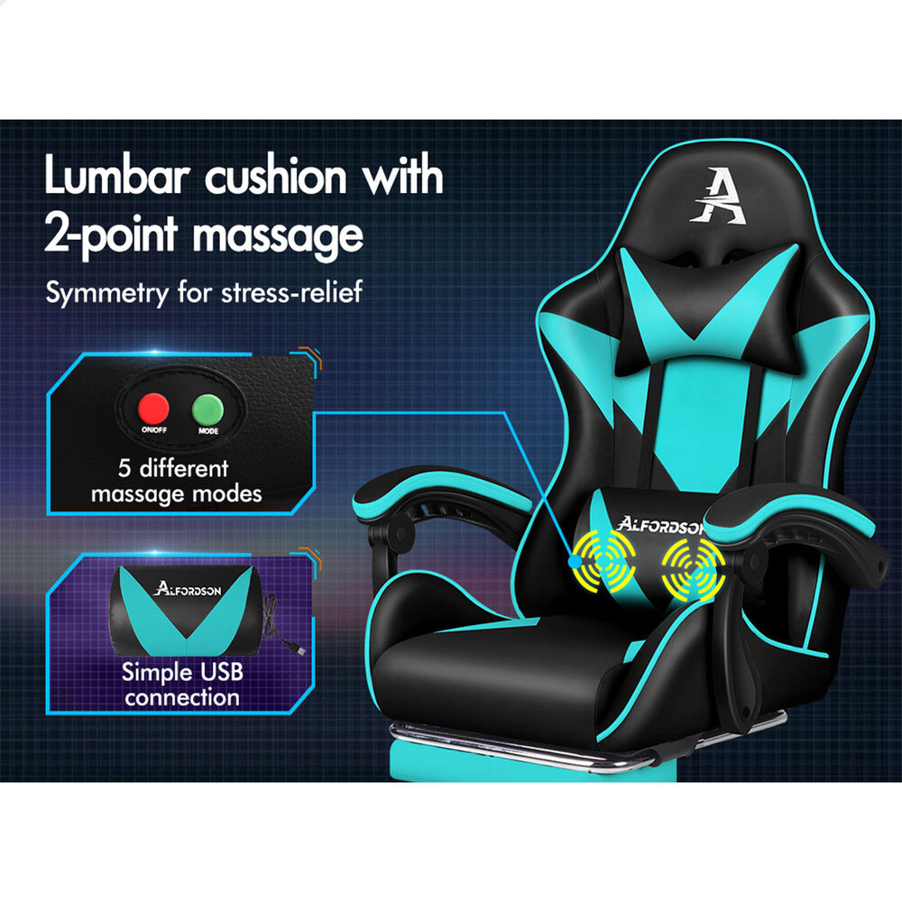 ALFORDSON Gaming Office Chair Massage Computer Footrest Leather Black & Cyan