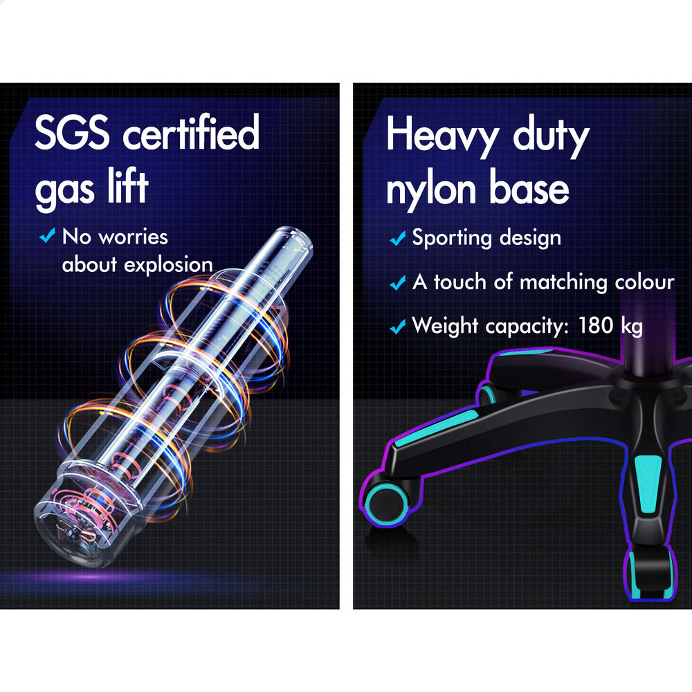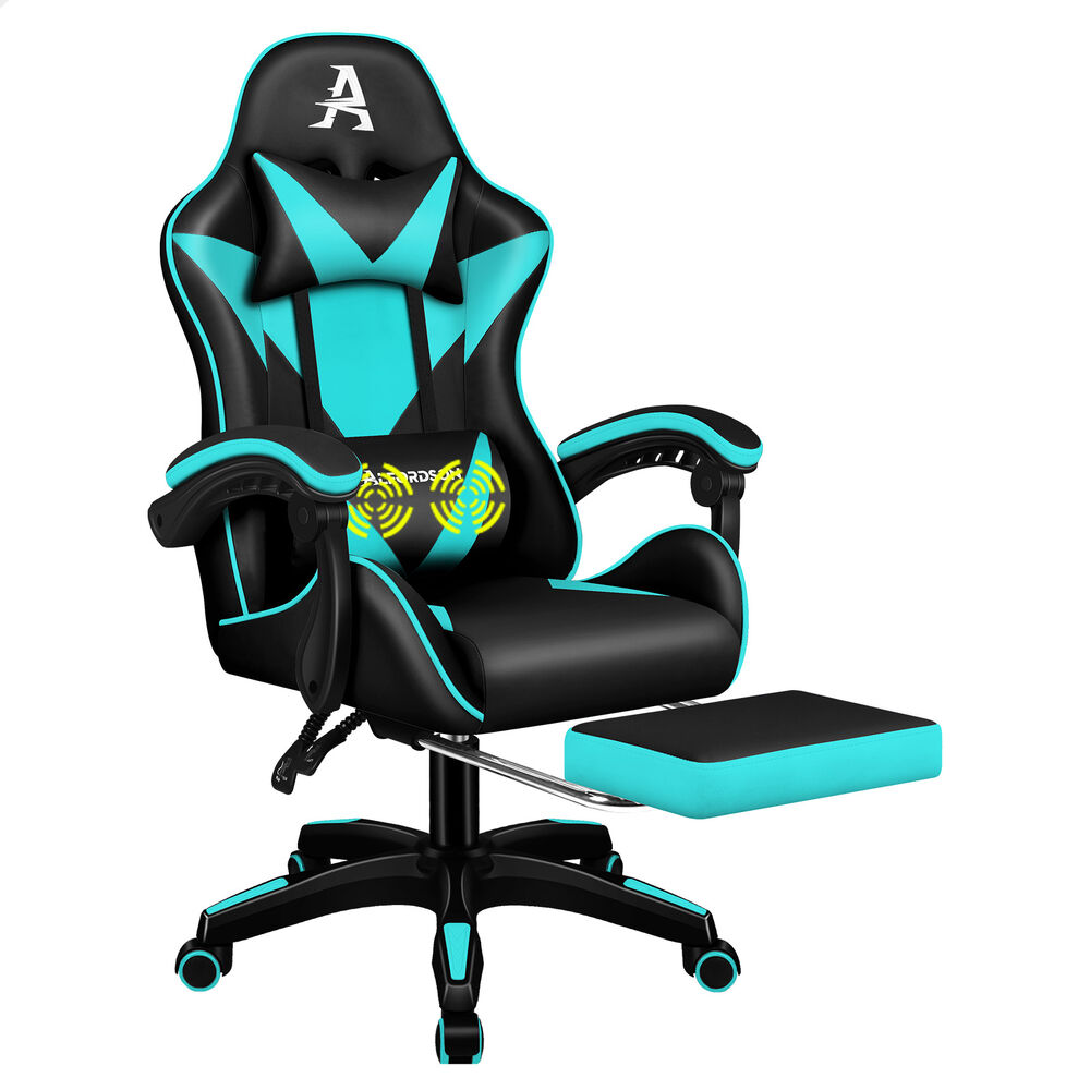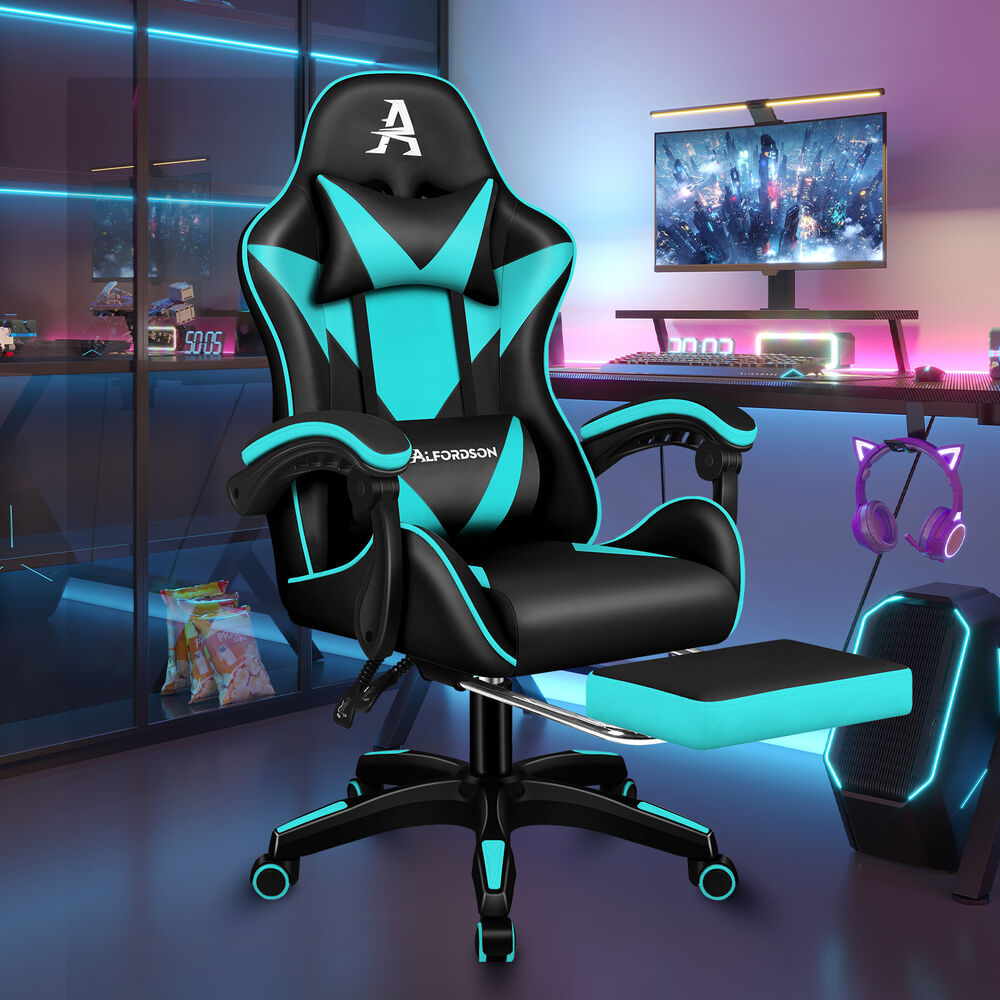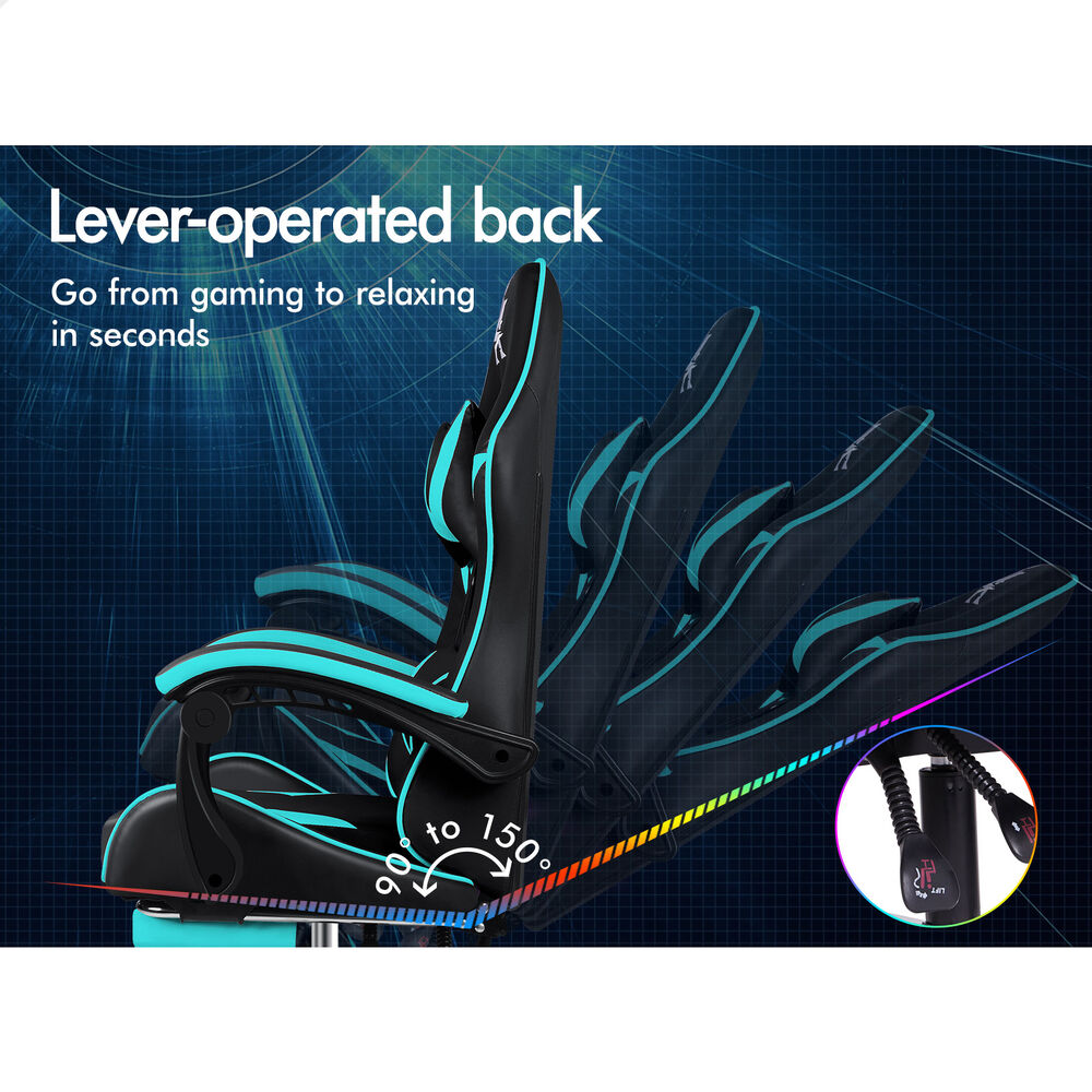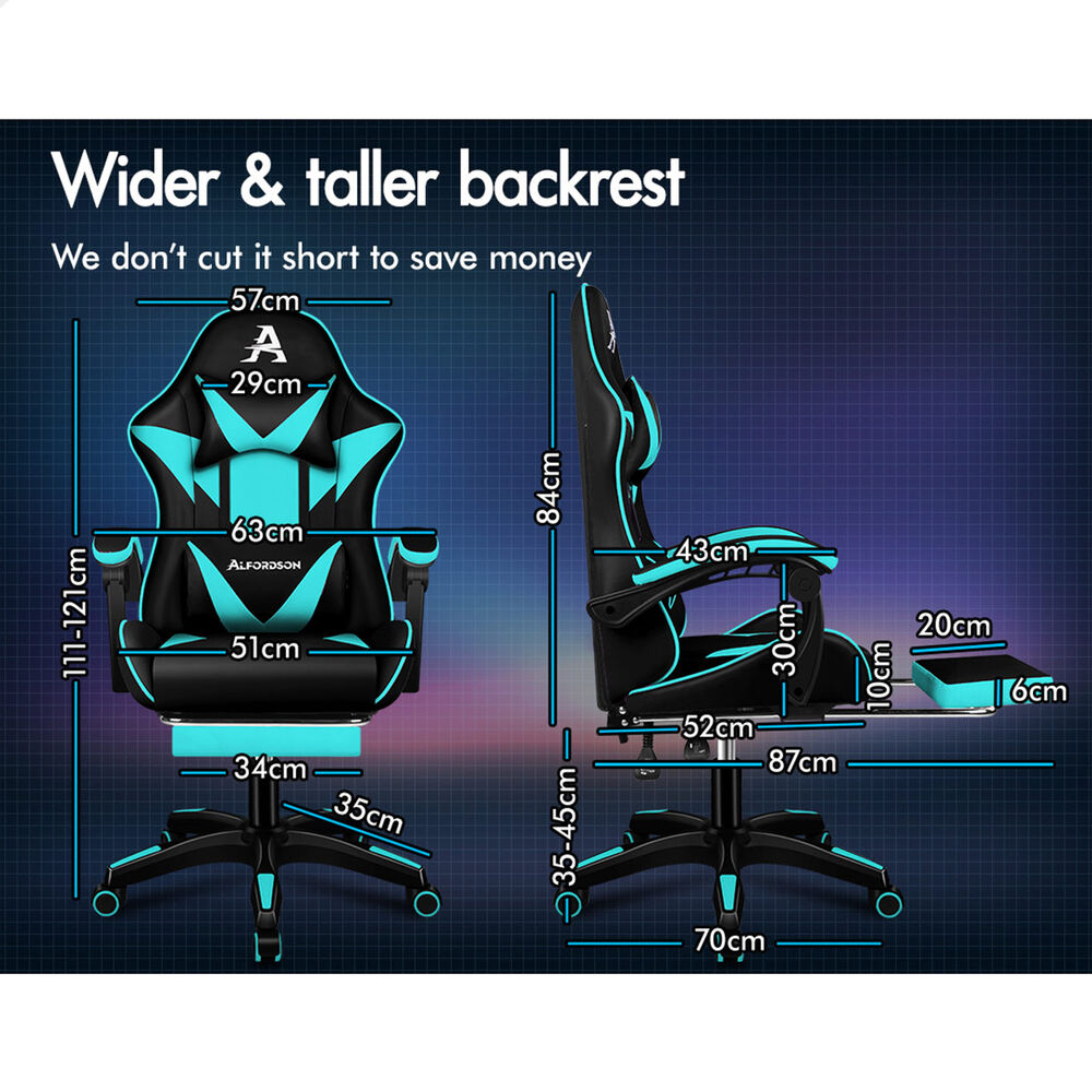 ALFORDSON Gaming Office Chair Massage Computer Footrest Leather Black & Cyan