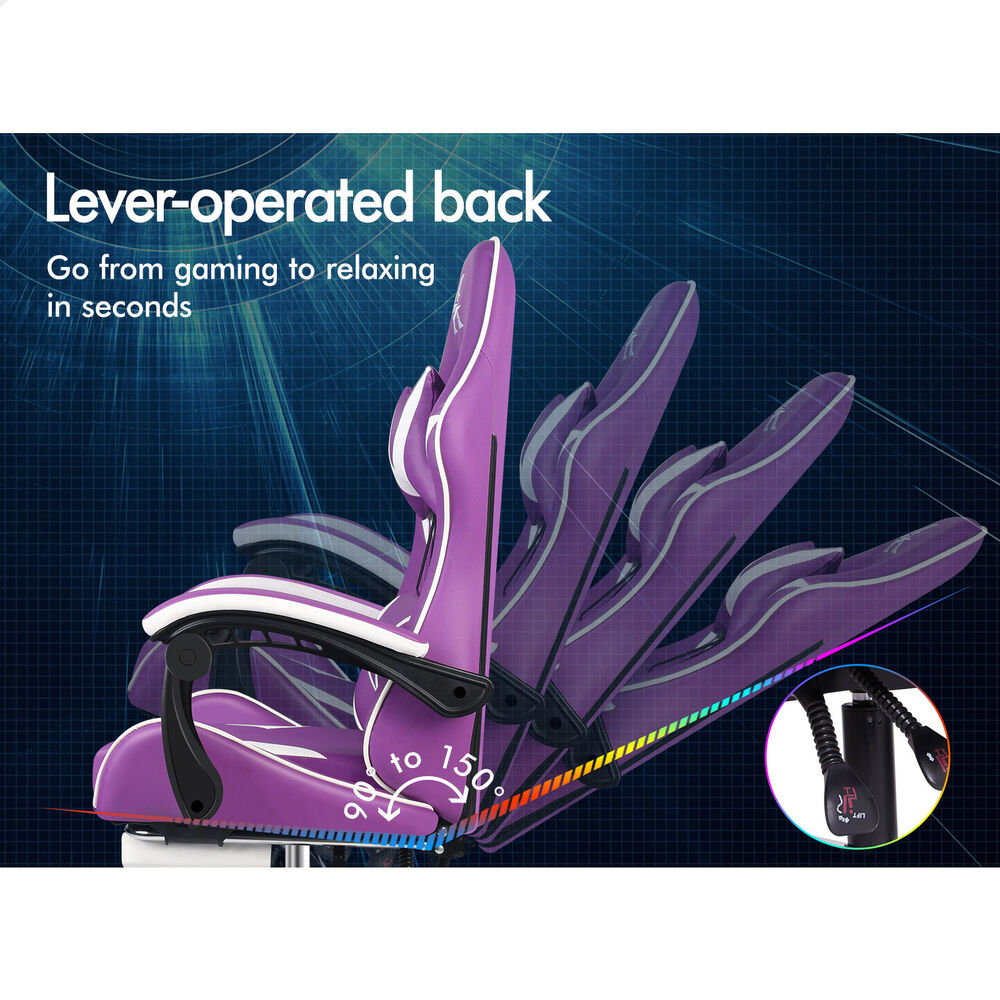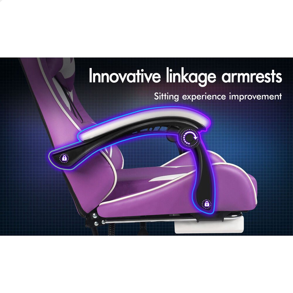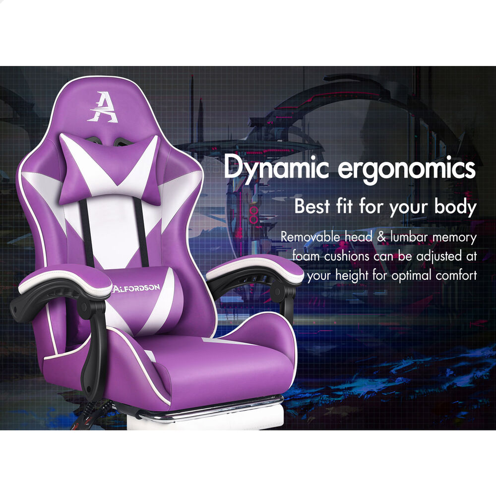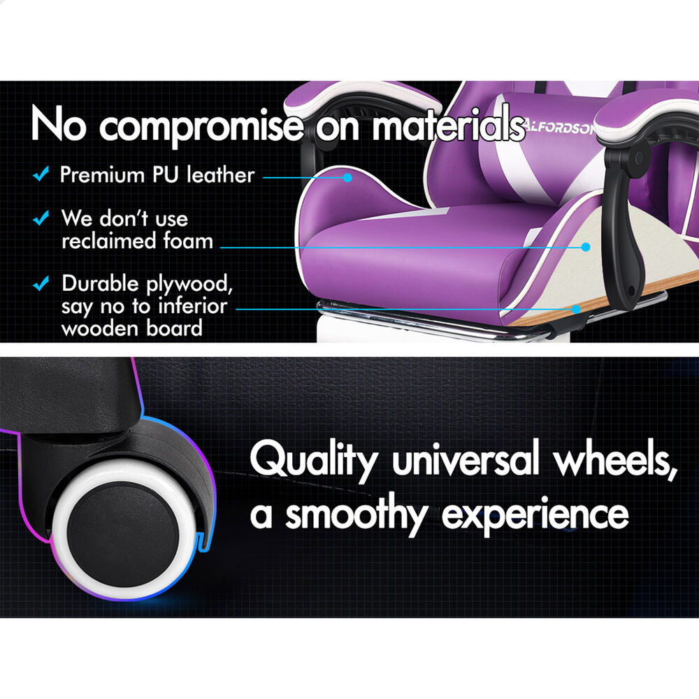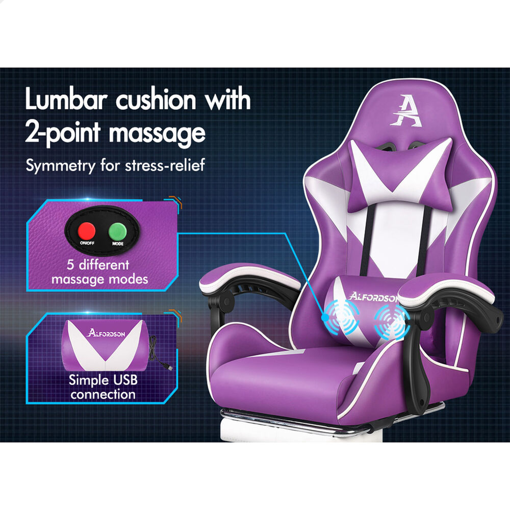 ALFORDSON Gaming Office Chair Massage Computer Footrest Leather Purple & White