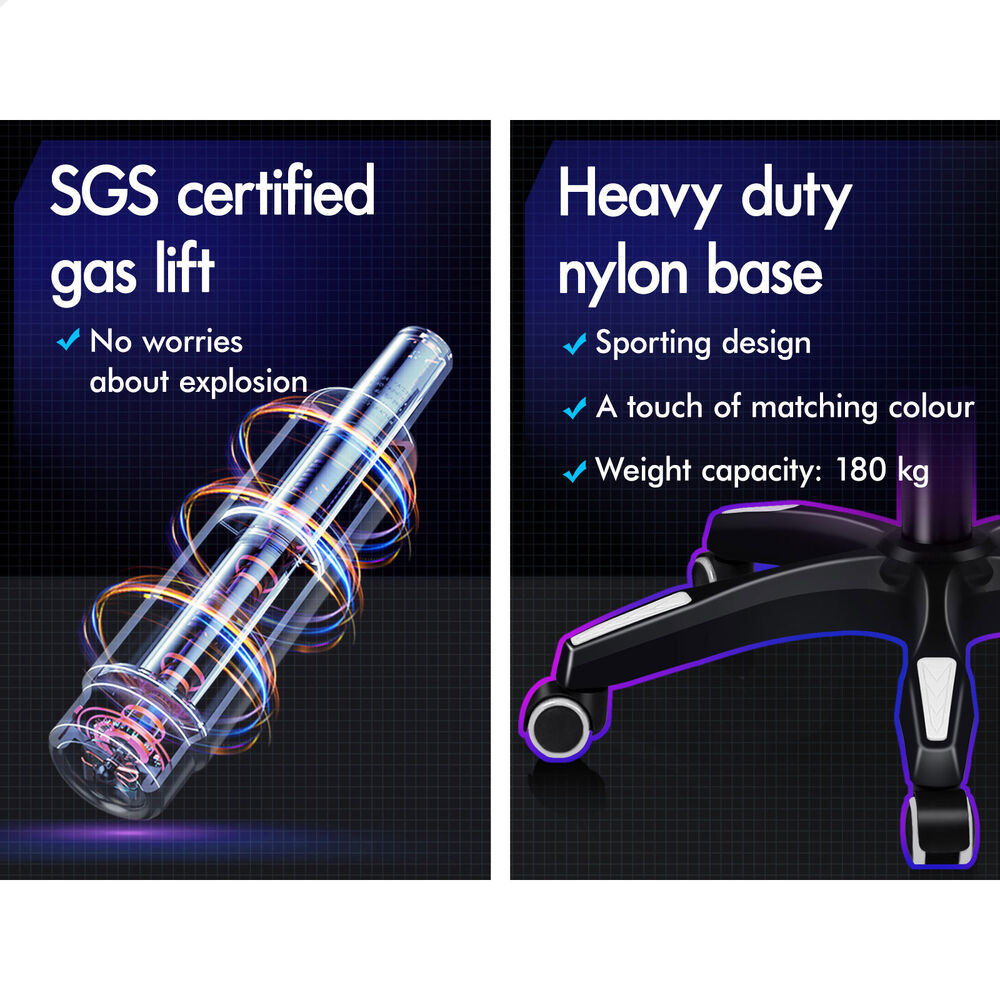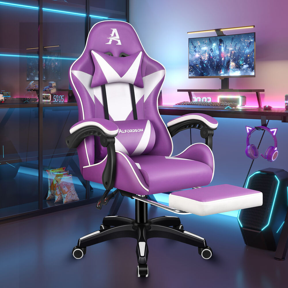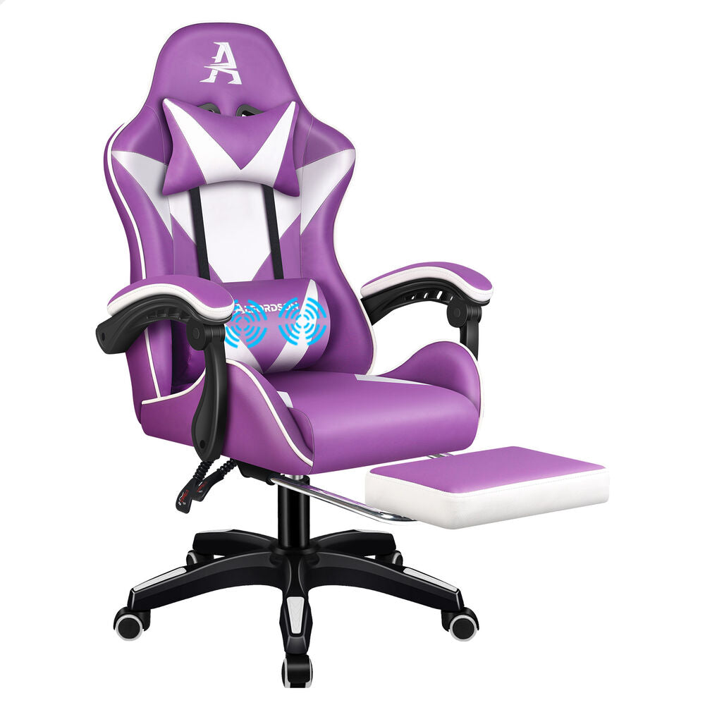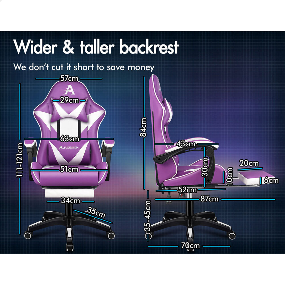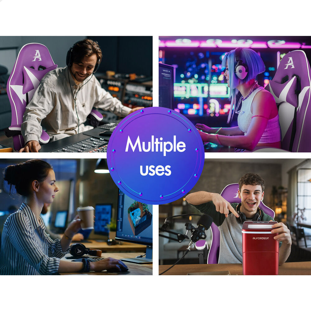 ALFORDSON Gaming Office Chair Massage Computer Footrest Leather Purple & White