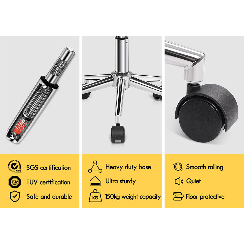 As always, we have no compromise on materials used. Five 360-degree caster wheels enable extreme smooth movement, in the meantime, protect the floor from being scratched. Better still, the shiny chrome base and footrest complement the modern design.