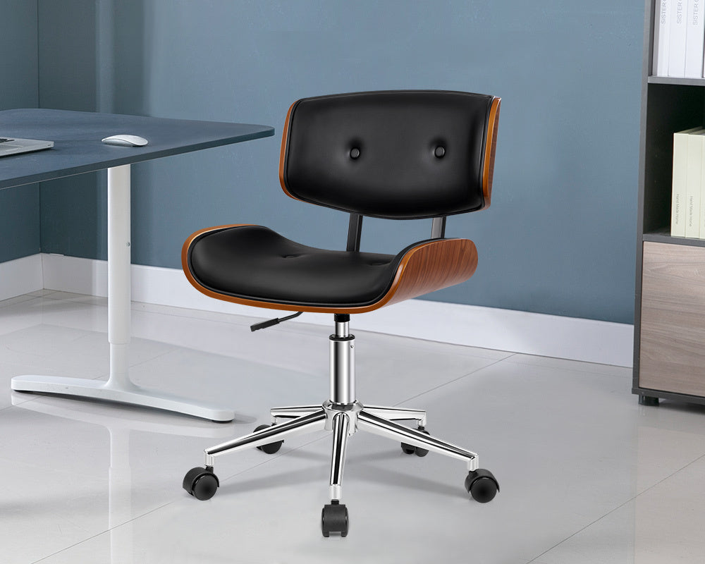 ALFORDSON Wooden Office Chair Computer Chairs Home Seat PU Leather Black