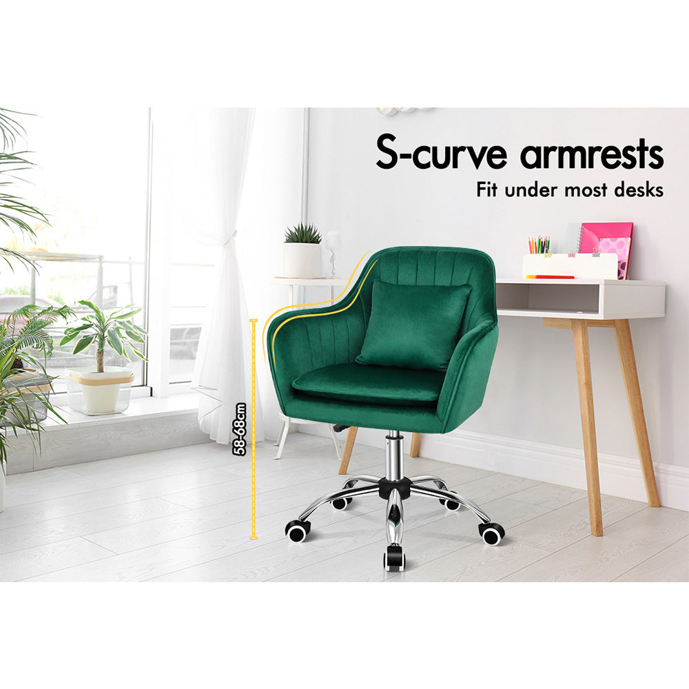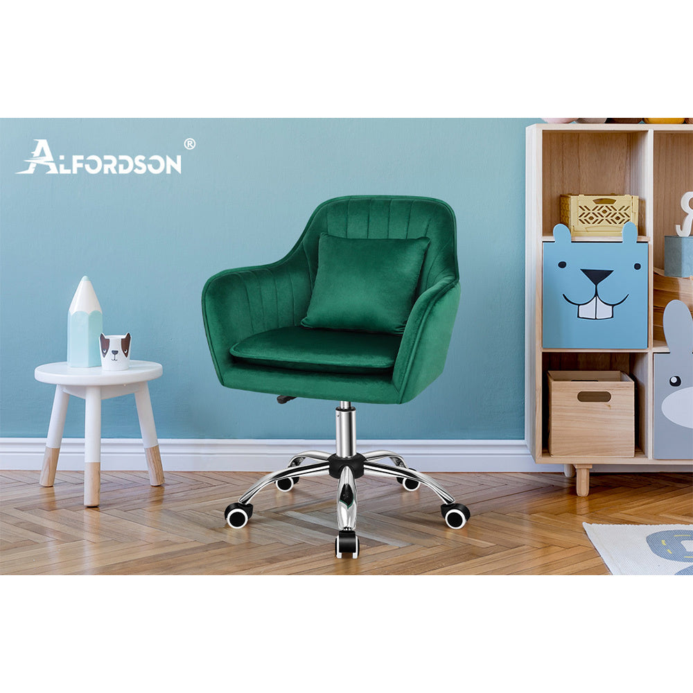 ALFORDSON Velvet Office Chair Computer Desk Chairs Swivel Armchair Work Seat Green Adult Kids