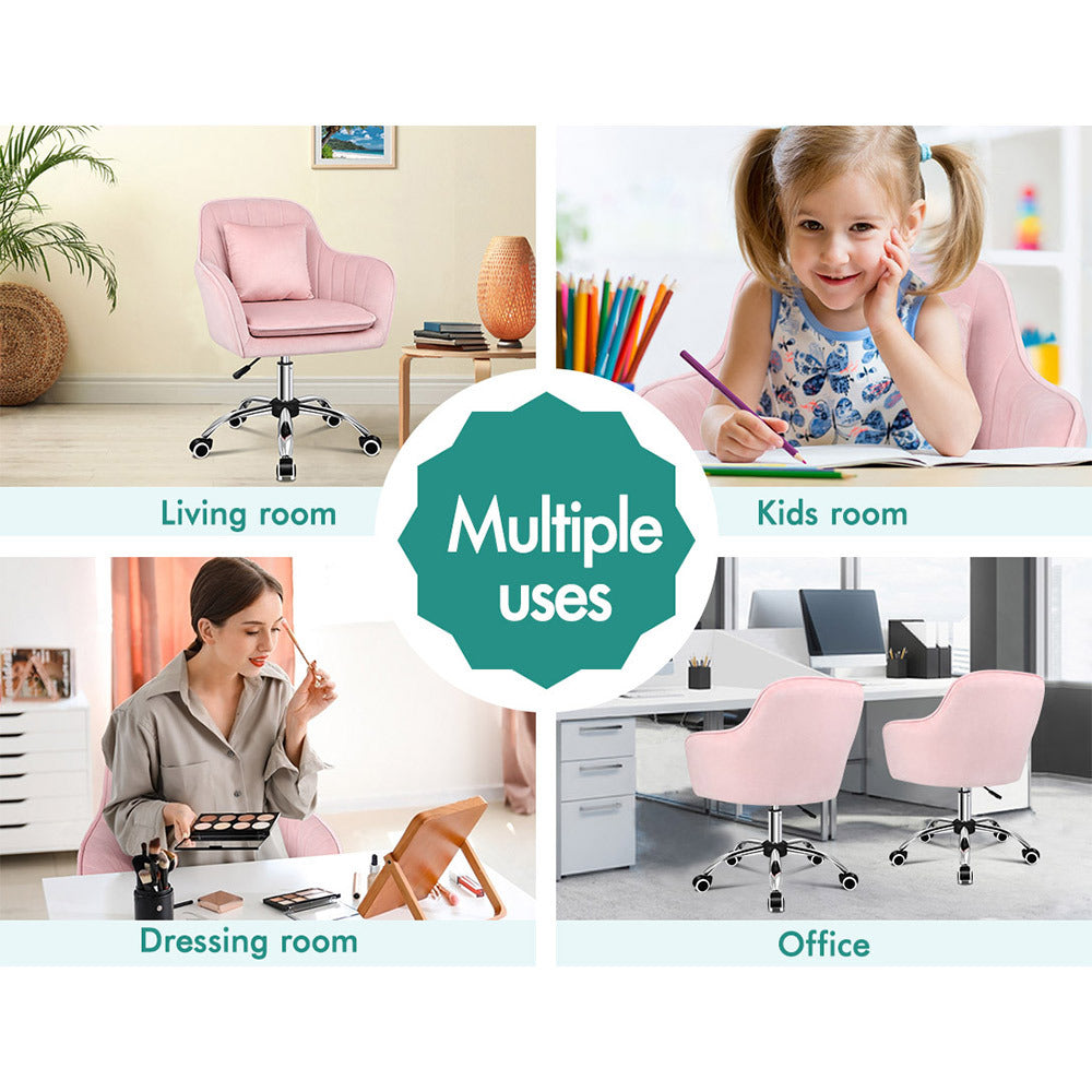 ALFORDSON Velvet Office Chair Computer Desk Chairs Swivel Armchair Work Seat Pink Adult Kids