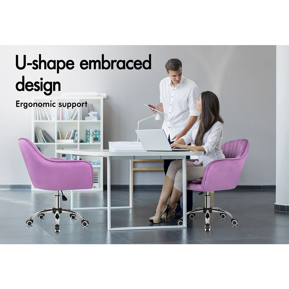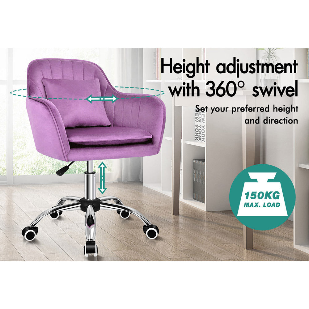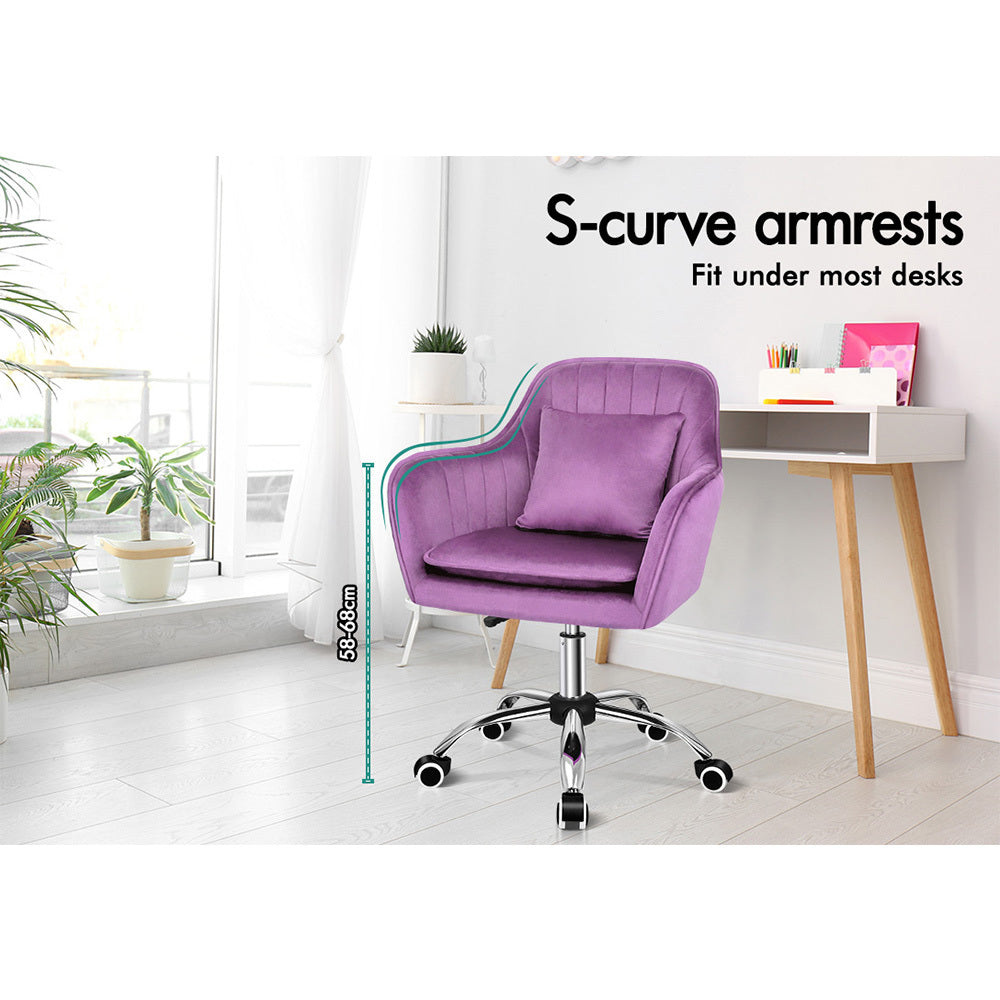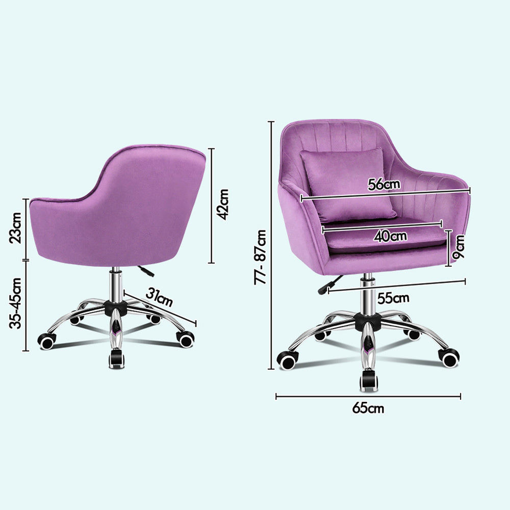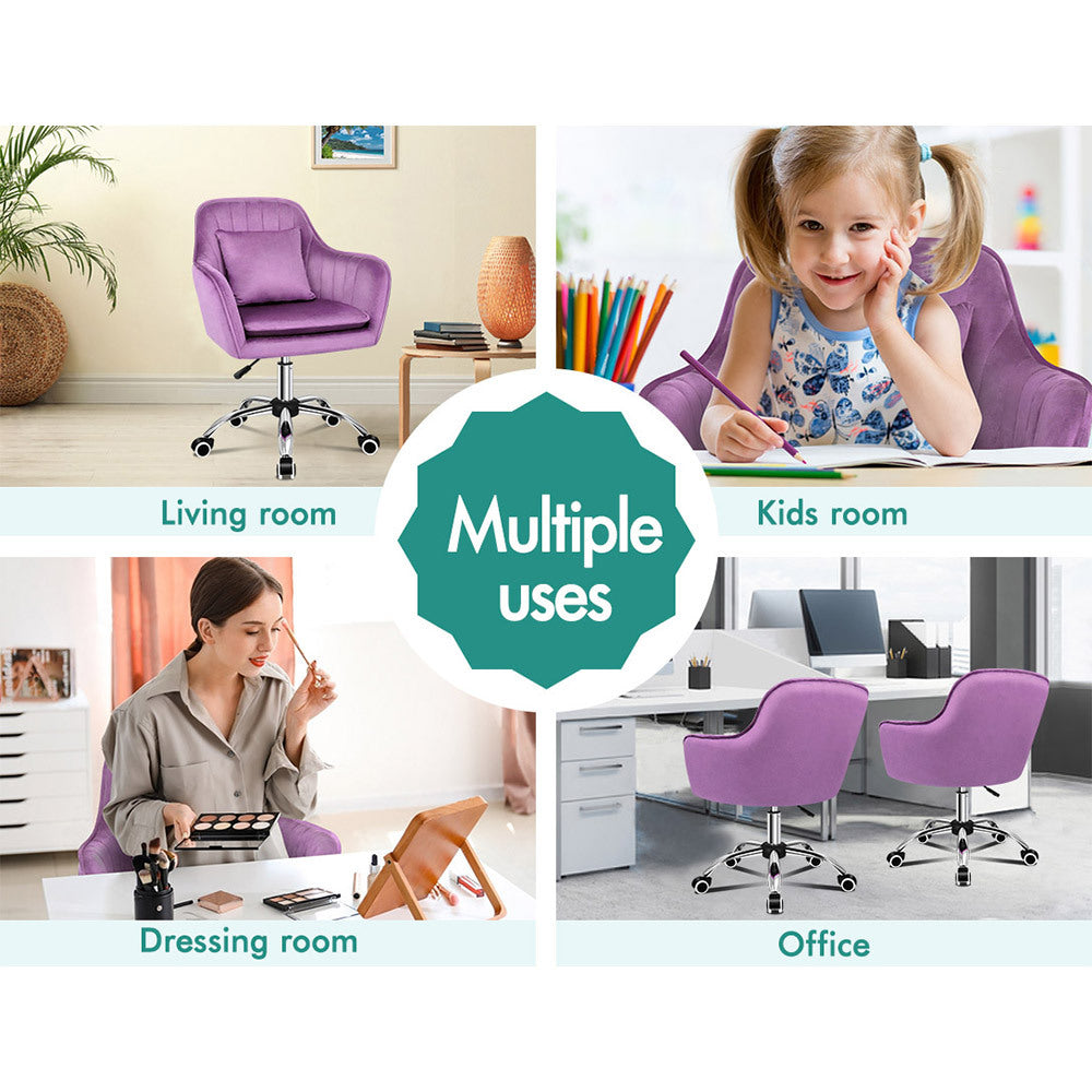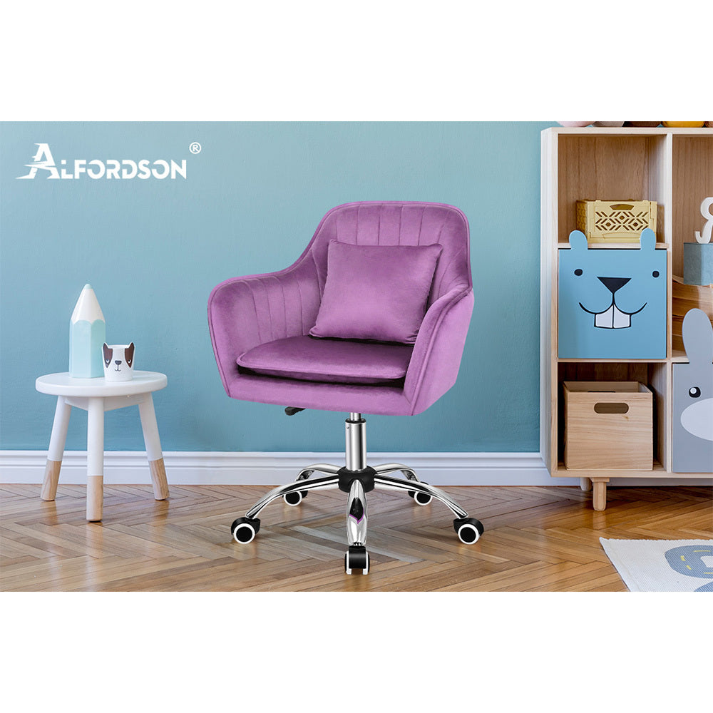 ALFORDSON Velvet Office Chair Computer Desk Chairs Swivel Armchair Work Seat Violet Adult Kids