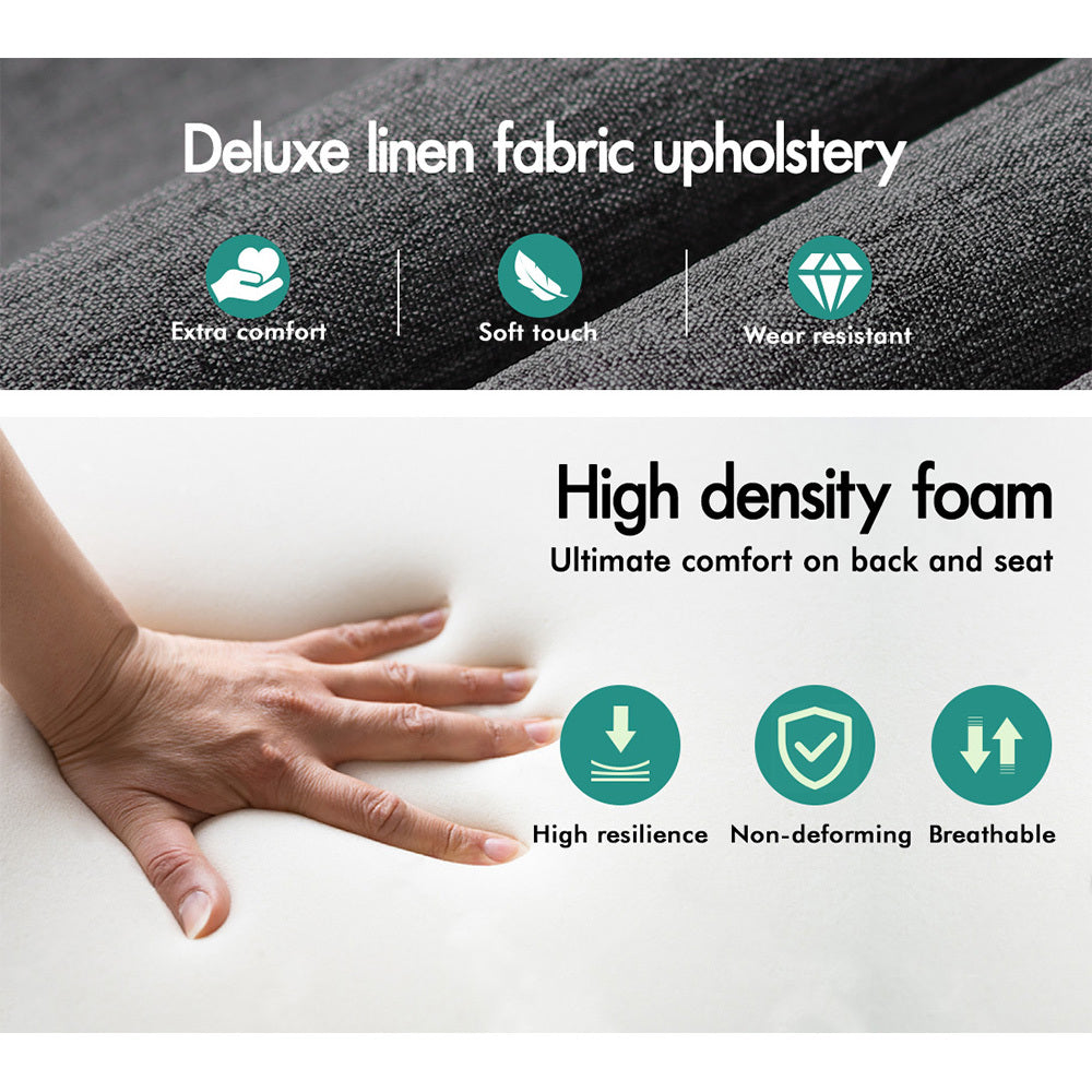 * Seat material: Premium linen fabric, solid plywood and high density foam