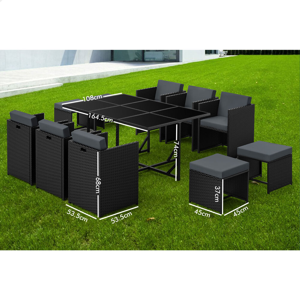 ALFORDSON Outdoor Dining Set 11 PCS Table Chairs Patio Lounge Wicker Furniture