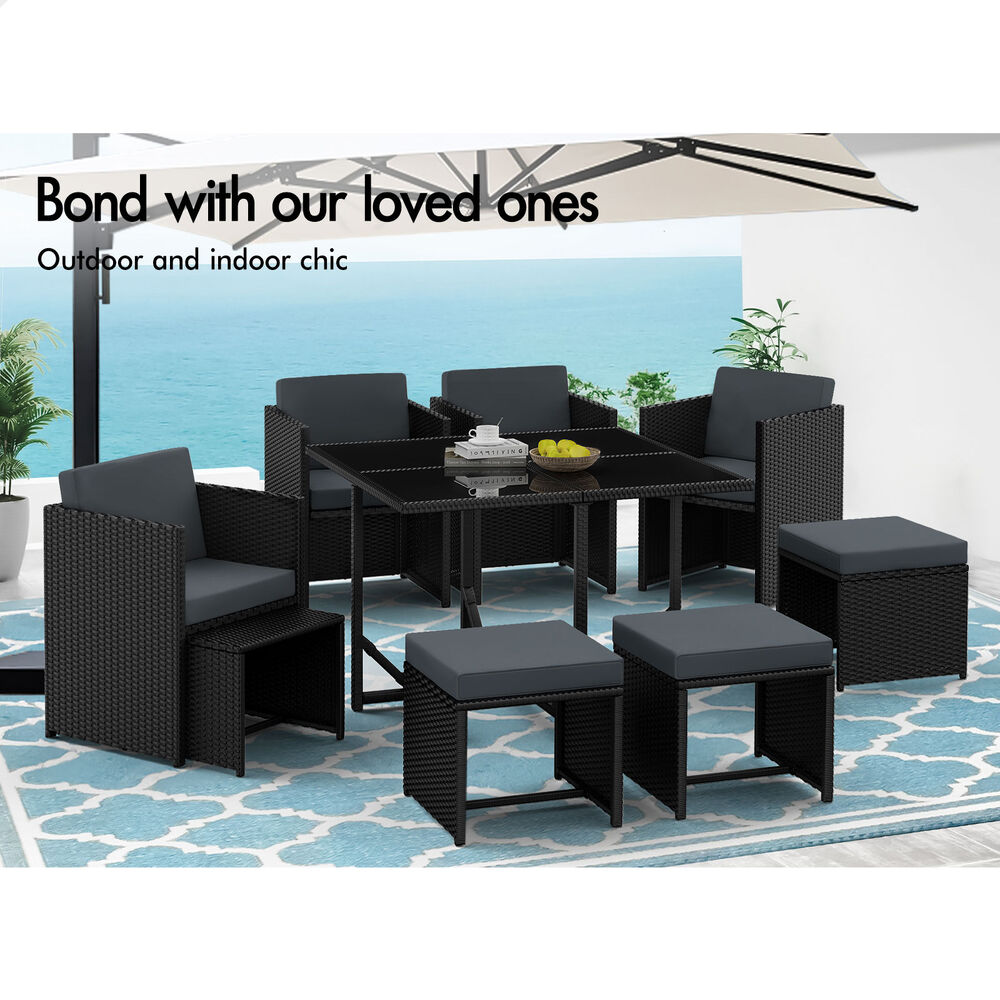 ALFORDSON Outdoor Dining Set 9 PCS Table Chairs Patio Lounge Wicker Furniture