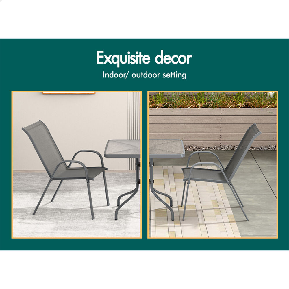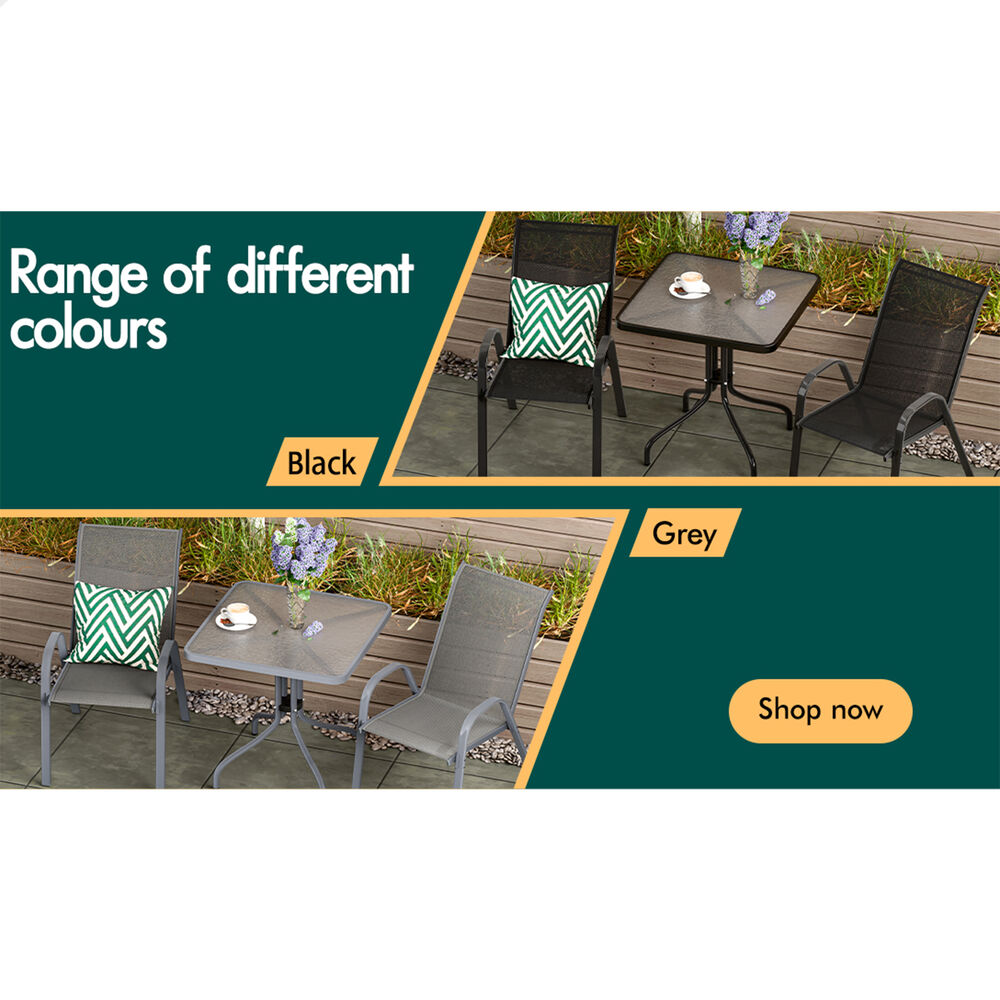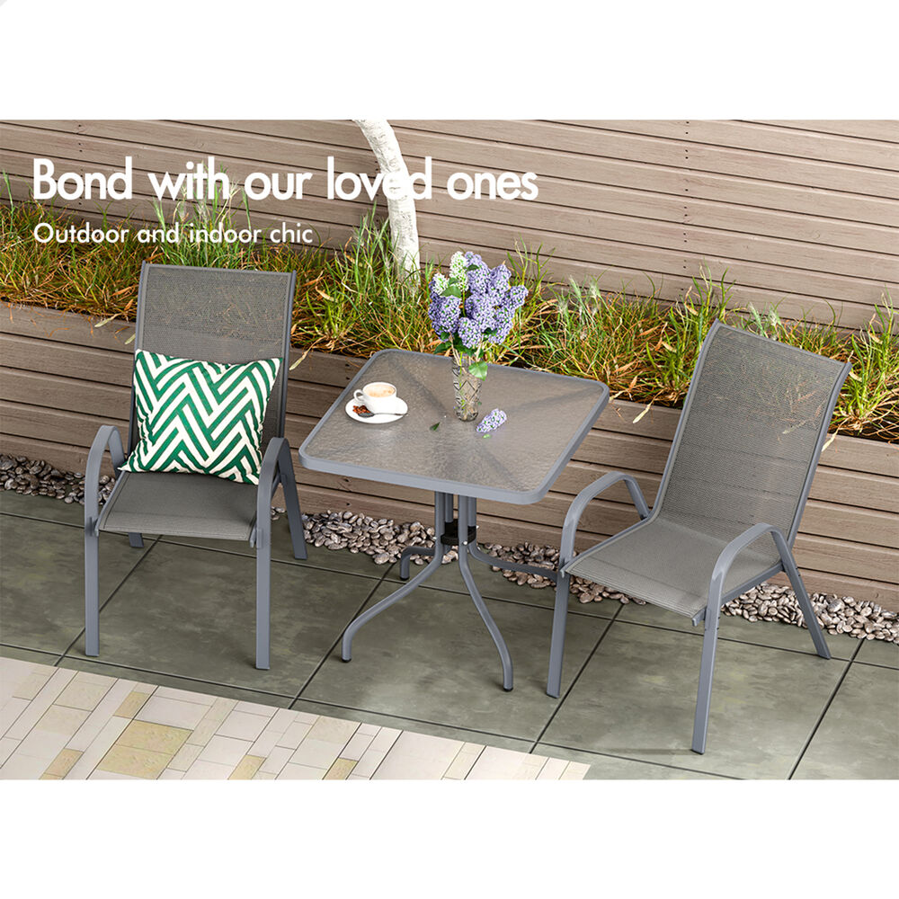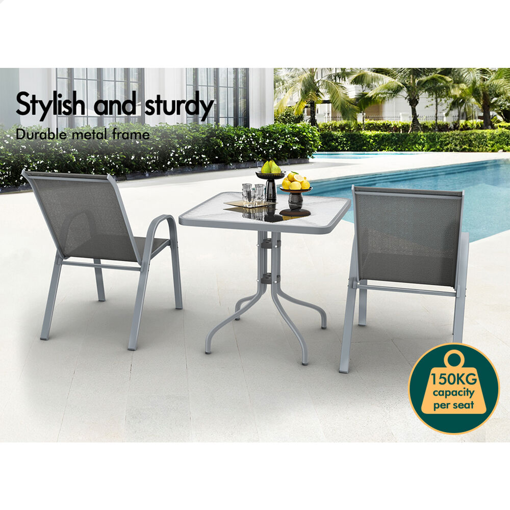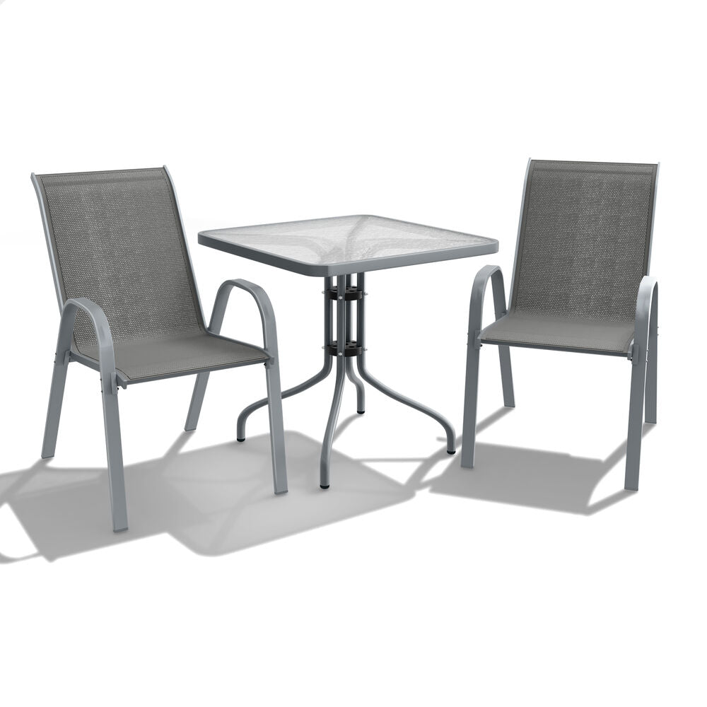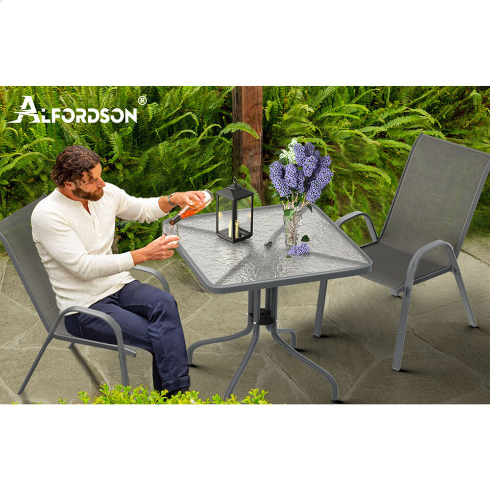 ALFORDSON 3PCS Outdoor Furniture Patio Table and Chairs Set Garden Square Grey