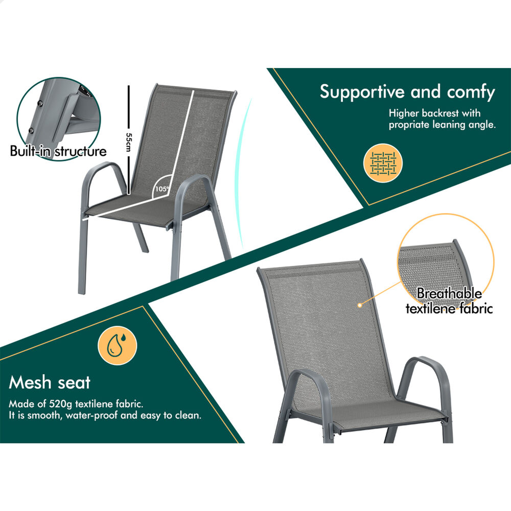 Who wants to host a party indoor whilst the sky is blue outside, or have friends over for coffee in the kitchen whilst the sun shines? Spending time outside in the fresh air not only reduces stress, but also improves our mood and sharpens our focus. With our ALFORDSON® 3-Piece Mesh Outdoor Patio Set, it will surely bring comfort and relaxing time to you and your family.