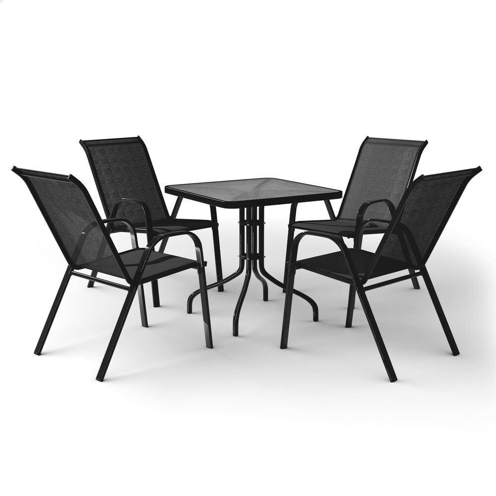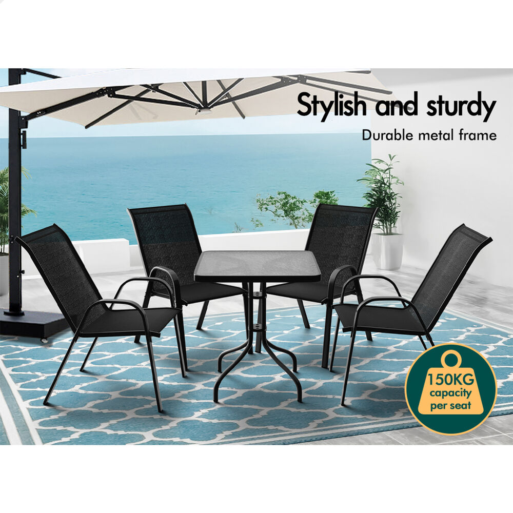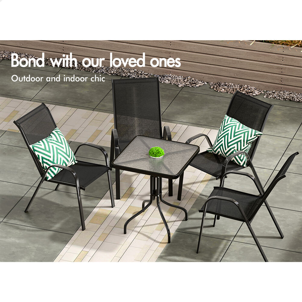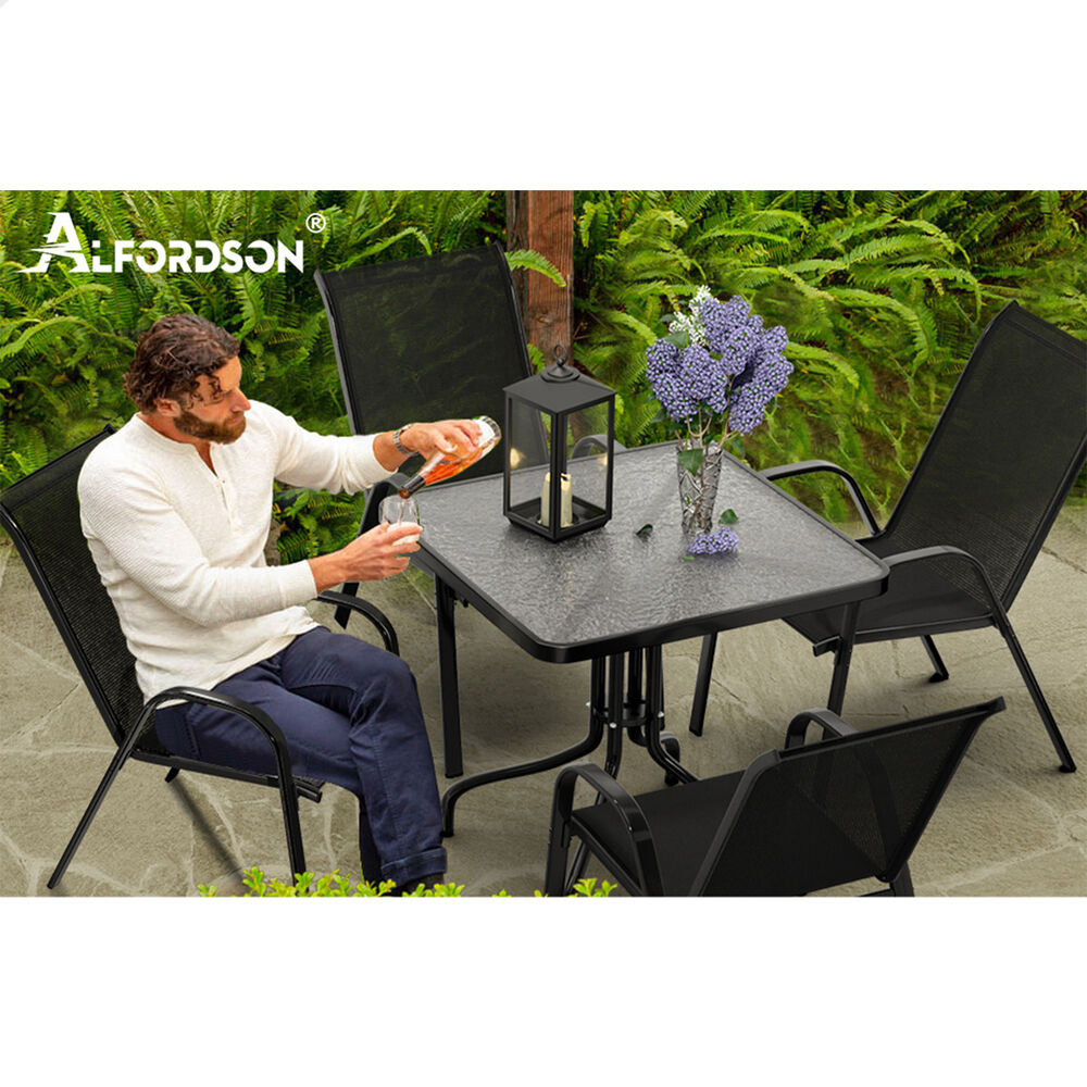 ALFORDSON 5PCS Outdoor Furniture Patio Table and Chairs Set Garden Square Black