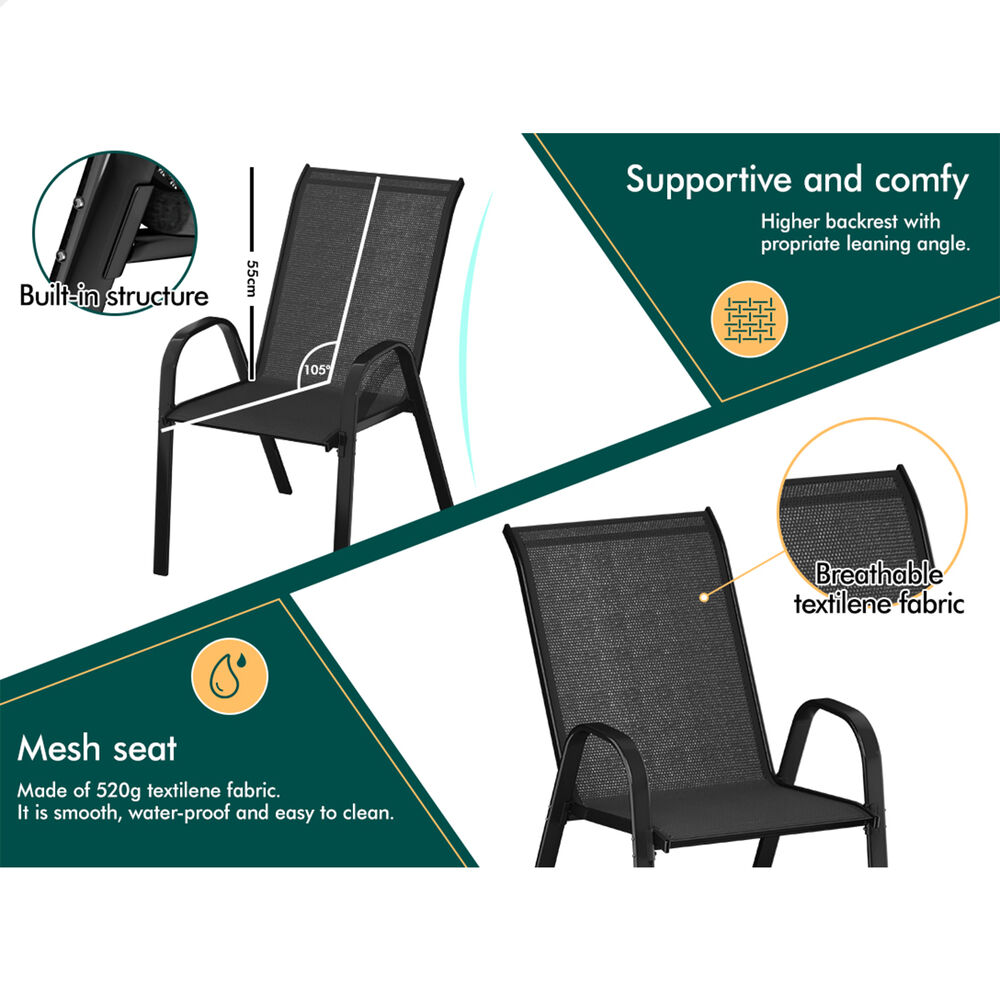 Who wants to host a party indoor whilst the sky is blue outside, or have friends over for coffee in the kitchen whilst the sun shines? Spending time outside in the fresh air not only reduces stress, but also improves our mood and sharpens our focus. With our ALFORDSON® 5-Piece Mesh Outdoor Dining Set, it will surely bring comfort and relaxing time to you and your family.