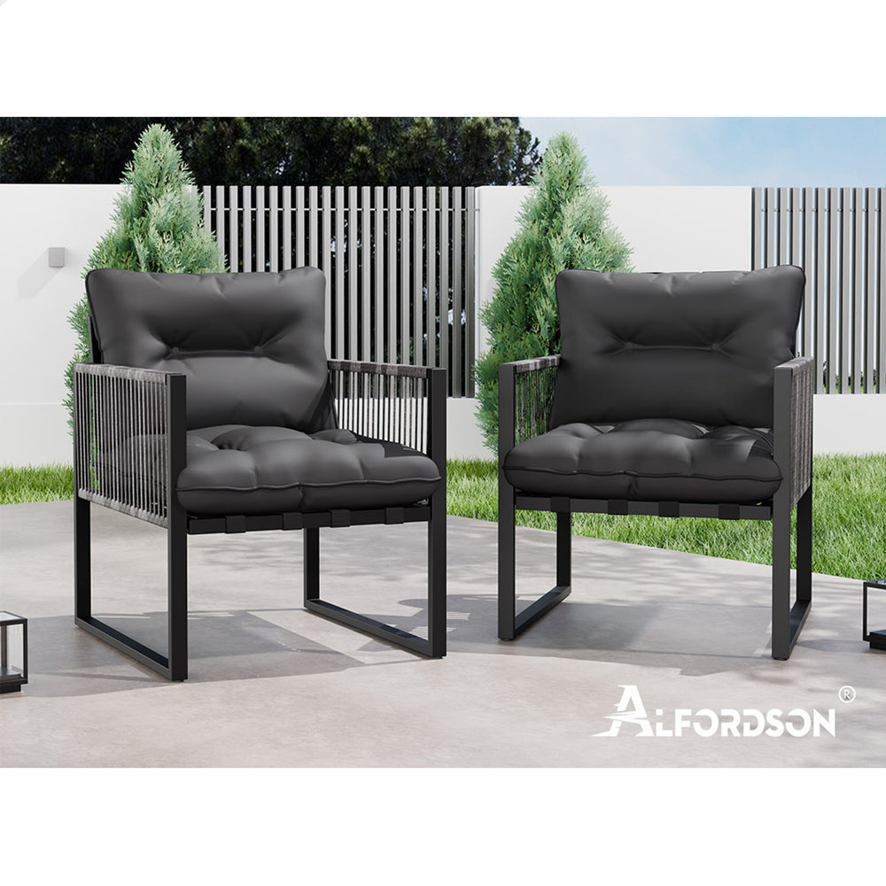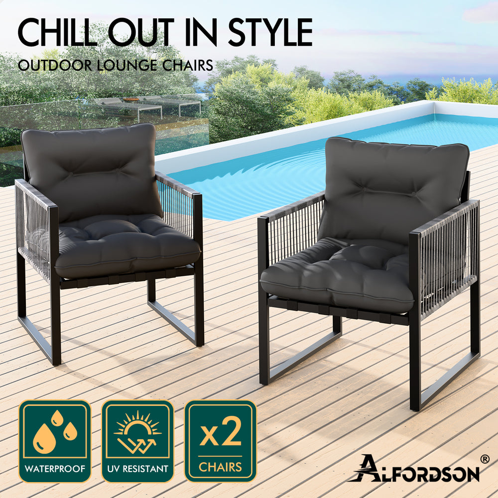 ALFORDSON Outdoor Furniture 2x Lounge Chairs Patio Garden Armchair Rattan Chair Black Grey