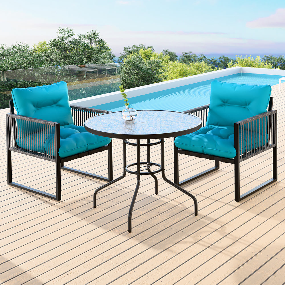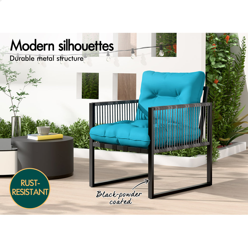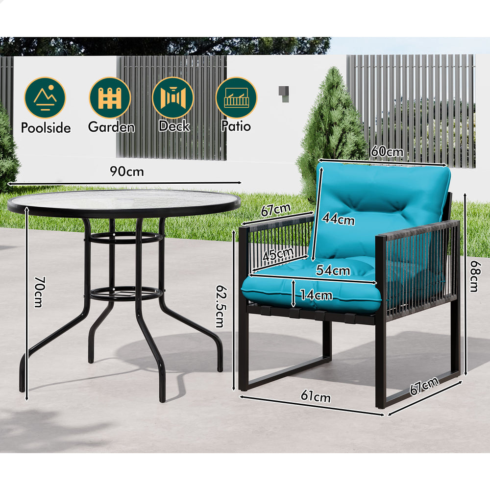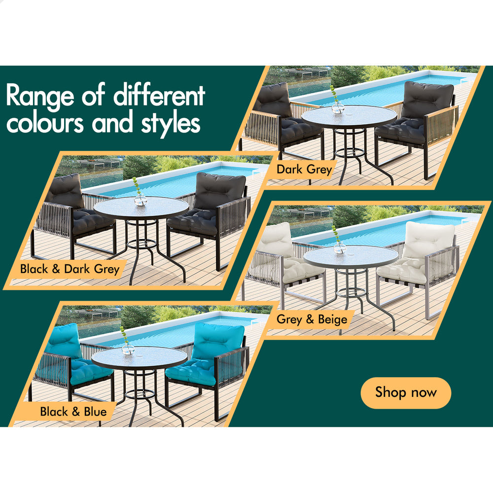 ALFORDSON Outdoor Lounge Set Table and Chairs Patio Furniture Glass Armchair