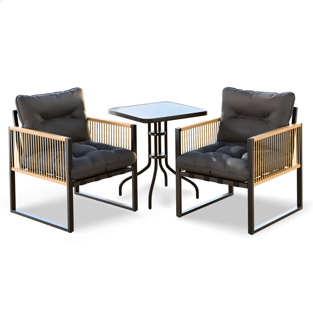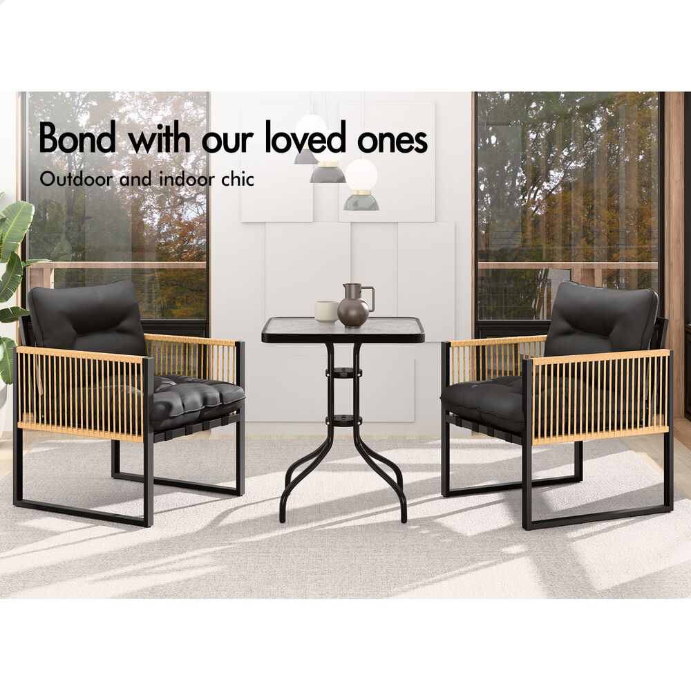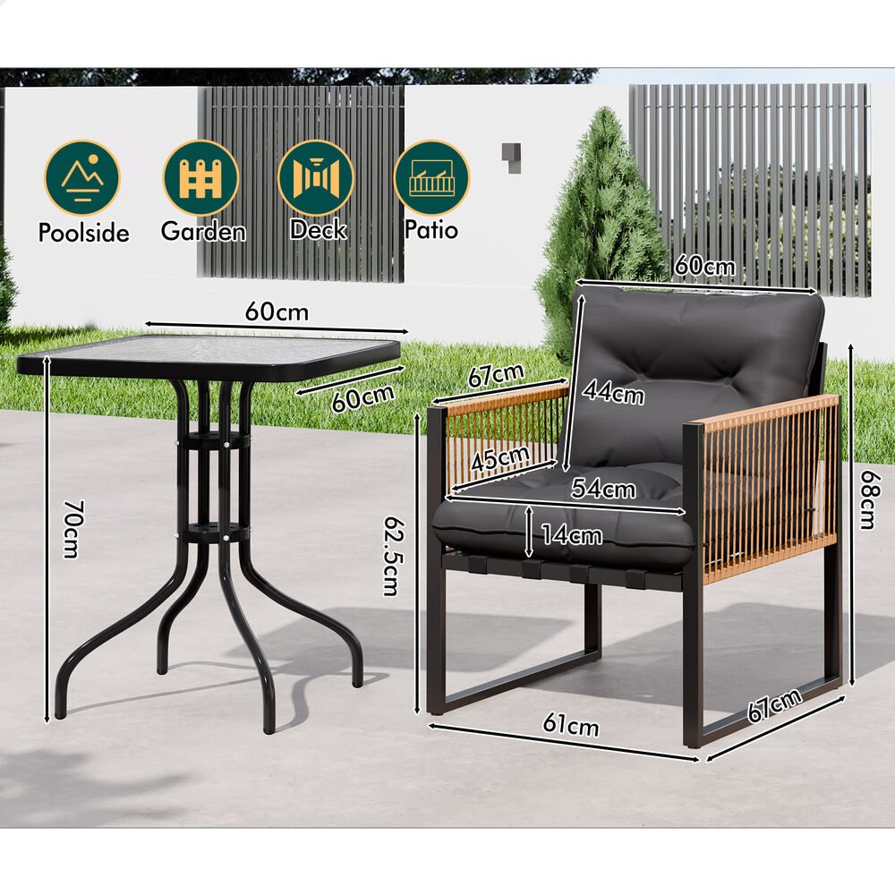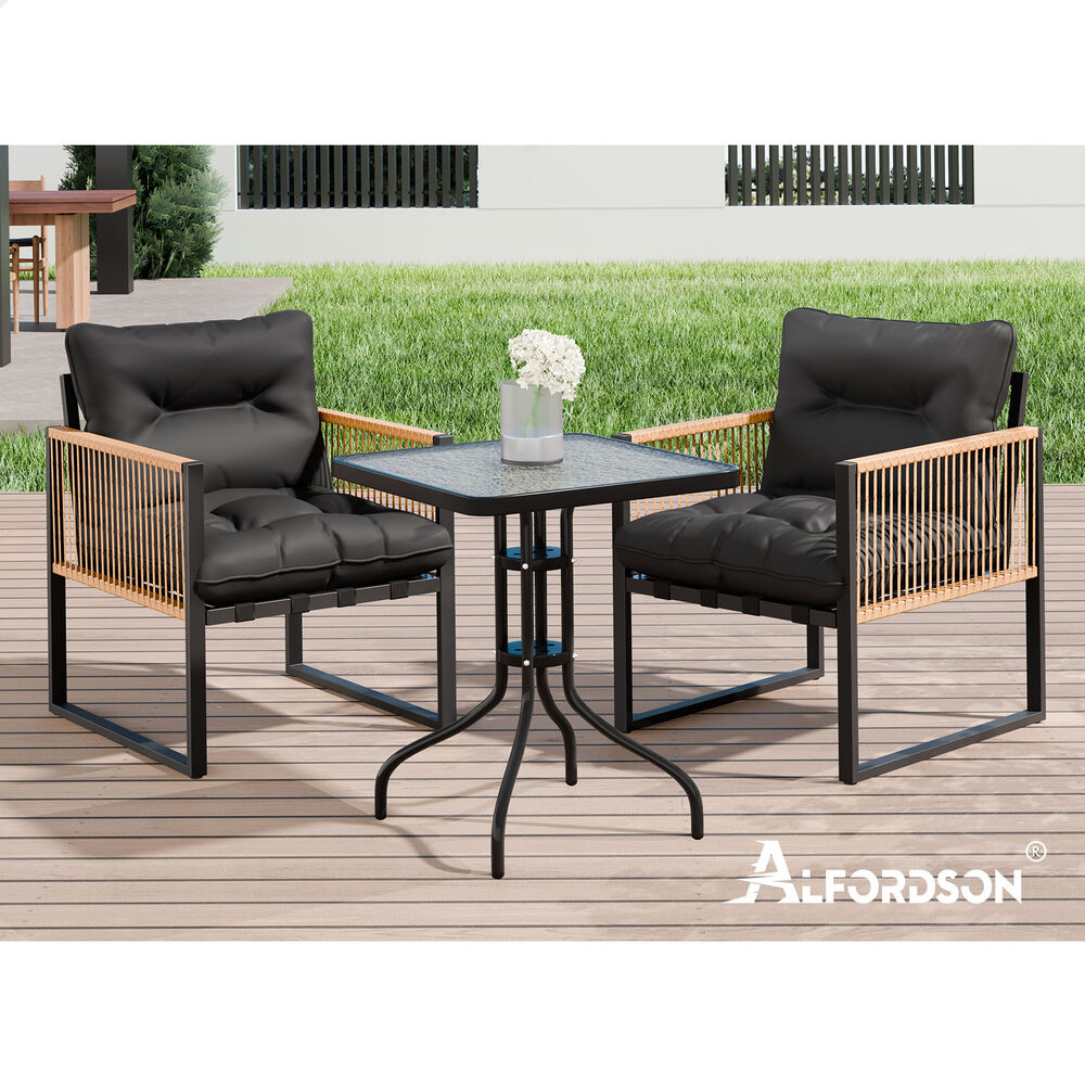 ALFORDSON Outdoor Furniture Set Patio Side Table Lounge Chair Glass Square Black