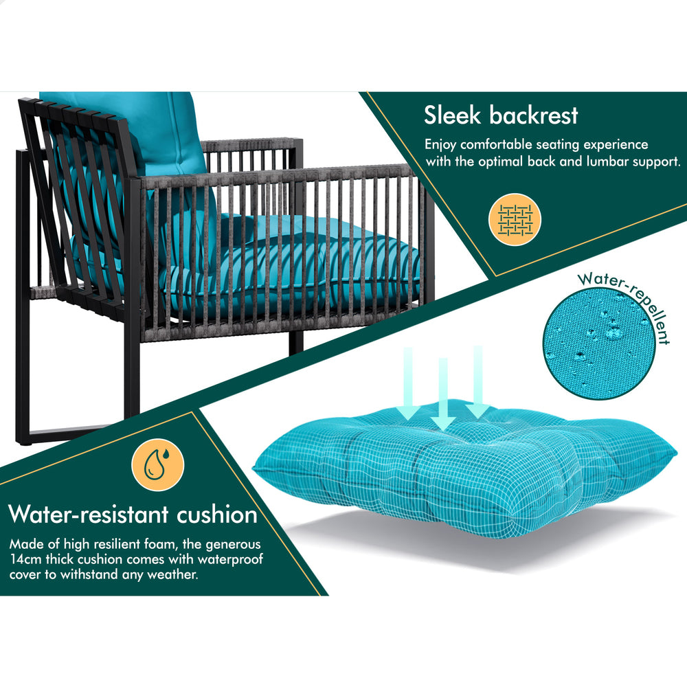 ALFORDSON Outdoor Lounge Set Patio Furniture Table and Chairs Glass Armchair