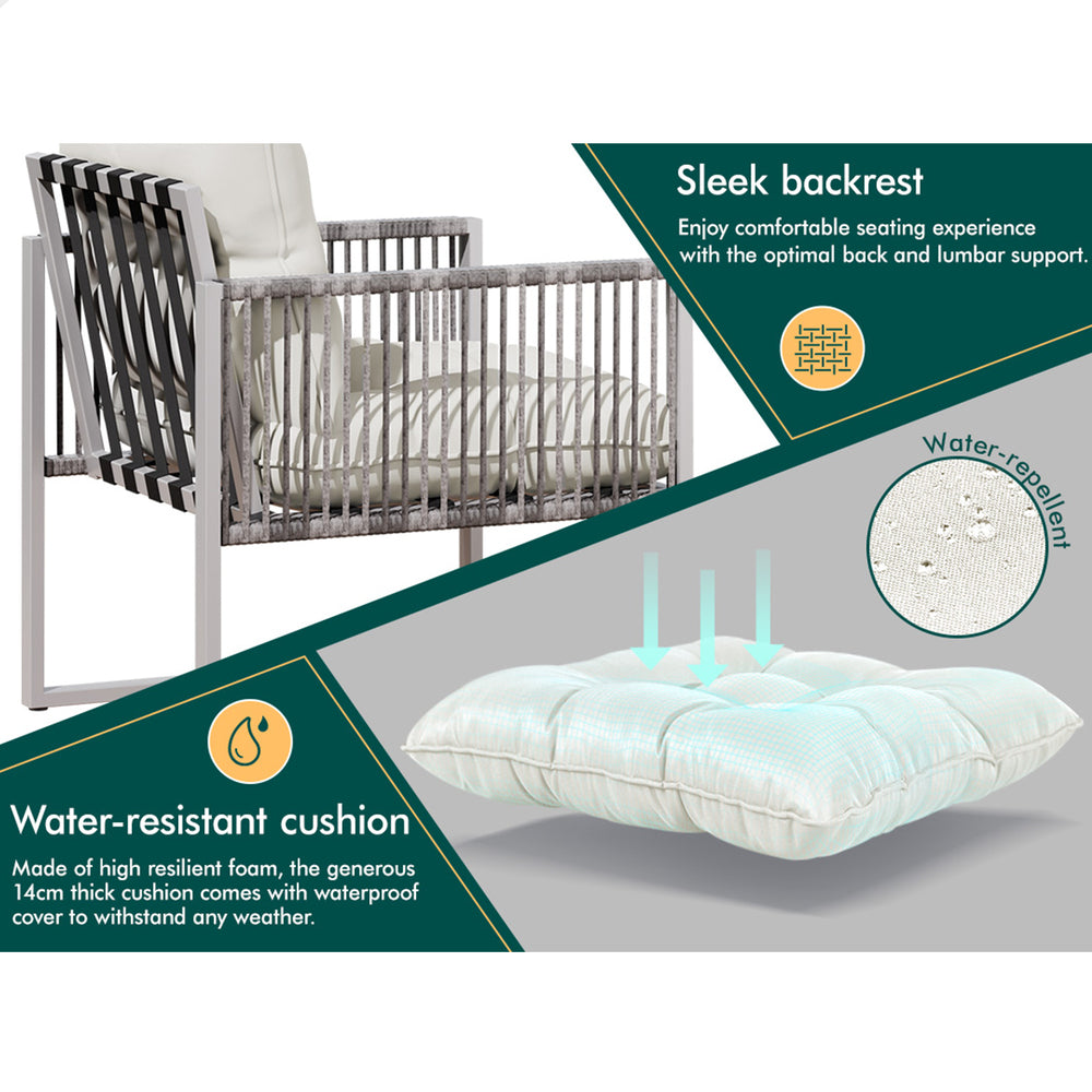 Who wants to host a party indoor whilst the sky is blue outside, or have friends over for coffee in the kitchen whilst the sun shines? Spending time outside in the fresh air not only reduces stress, but also improves our mood and sharpens our focus. With our ALFORDSON® 4-Piece Outdoor Lounge Set, it will surely bring comfort and relaxing time to you and your family.