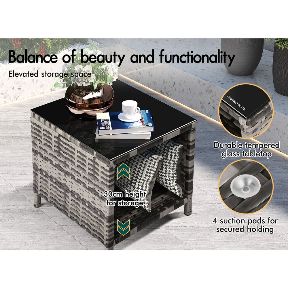 ALFORDSON Outdoor Furniture 3PCS Wicker Bistro Set Patio Chairs Table Mixed Grey