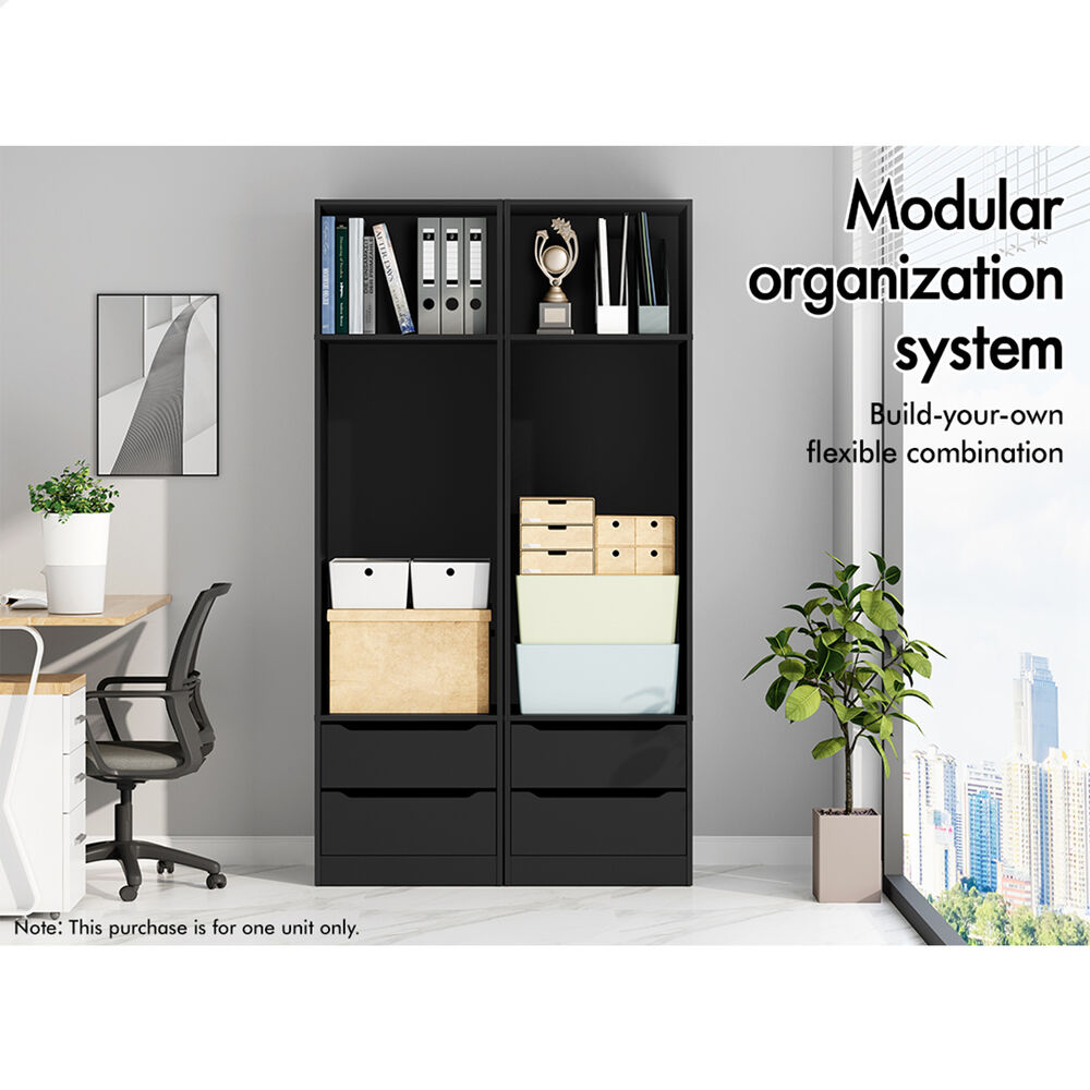 ALFORDSON Chest of 2 Drawers Office Storage Cabinet Tallboy Bedroom Black
