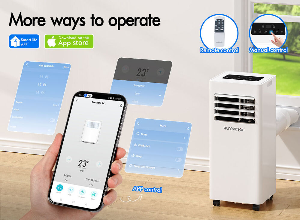 ALFORDSON Portable Air Conditioner 7000BTU Cooling Fan 4-in-1 Dehumidifier Wi-Fi