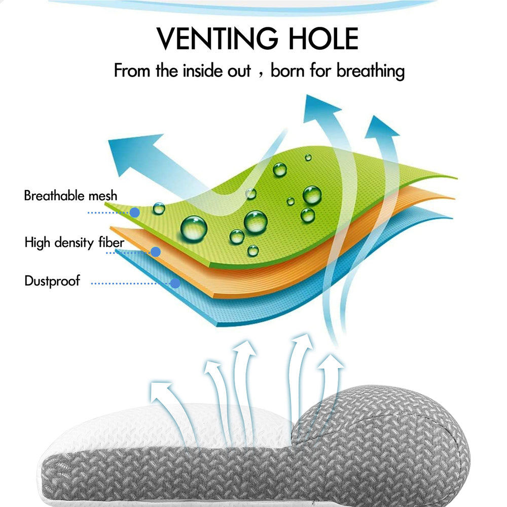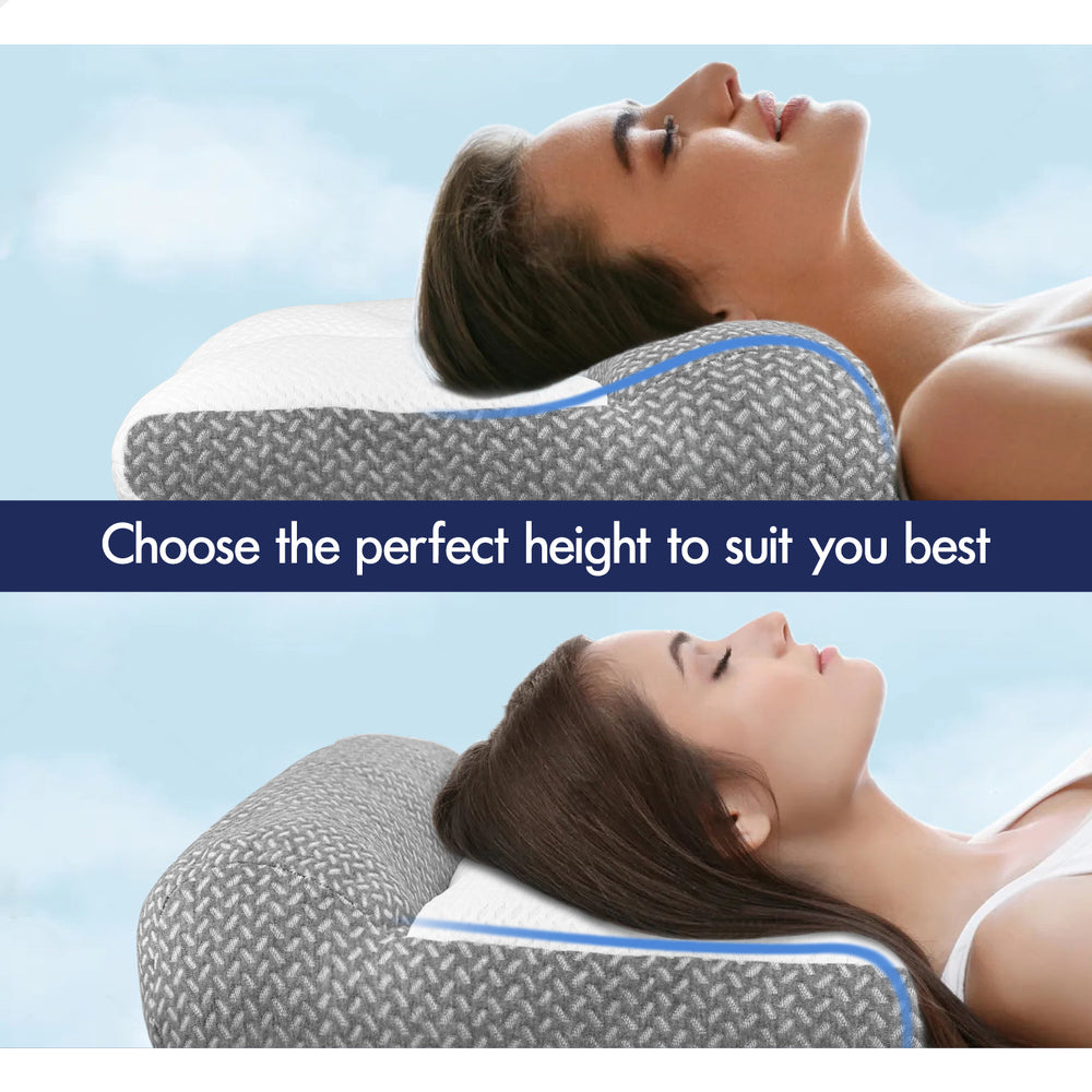 Are you suffering from waking up with neck pain or headache? This is because your pillow is not suitable for you and it puts your cervical spine in the wrong position. We strongly recommend you to try our cervical contour ergonomic pillow. The good shape of the pillow helps you sleep in the right position and keeps your cervical spine straight to prevent you from waking up with neck pain and headaches. The pillow's height is adjustable, so you can choose the right height to suit you best!