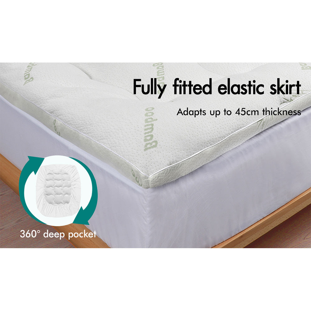 Filled with eco-friendly bamboo microfibre filling, our mattress topper brings comfort without odours and allergens. Plus, the naturally breathable and moisture-wicking cover is hypoallergenic. It's easy to enhance your comfort or upgrade the experience of an old mattress with our topper. The 45cm fitted skirt not only makes the topper stay firmly but also keeps smoothly attached to your mattress despite tossing and turning through the night, which decreases tangled mess in the morning.