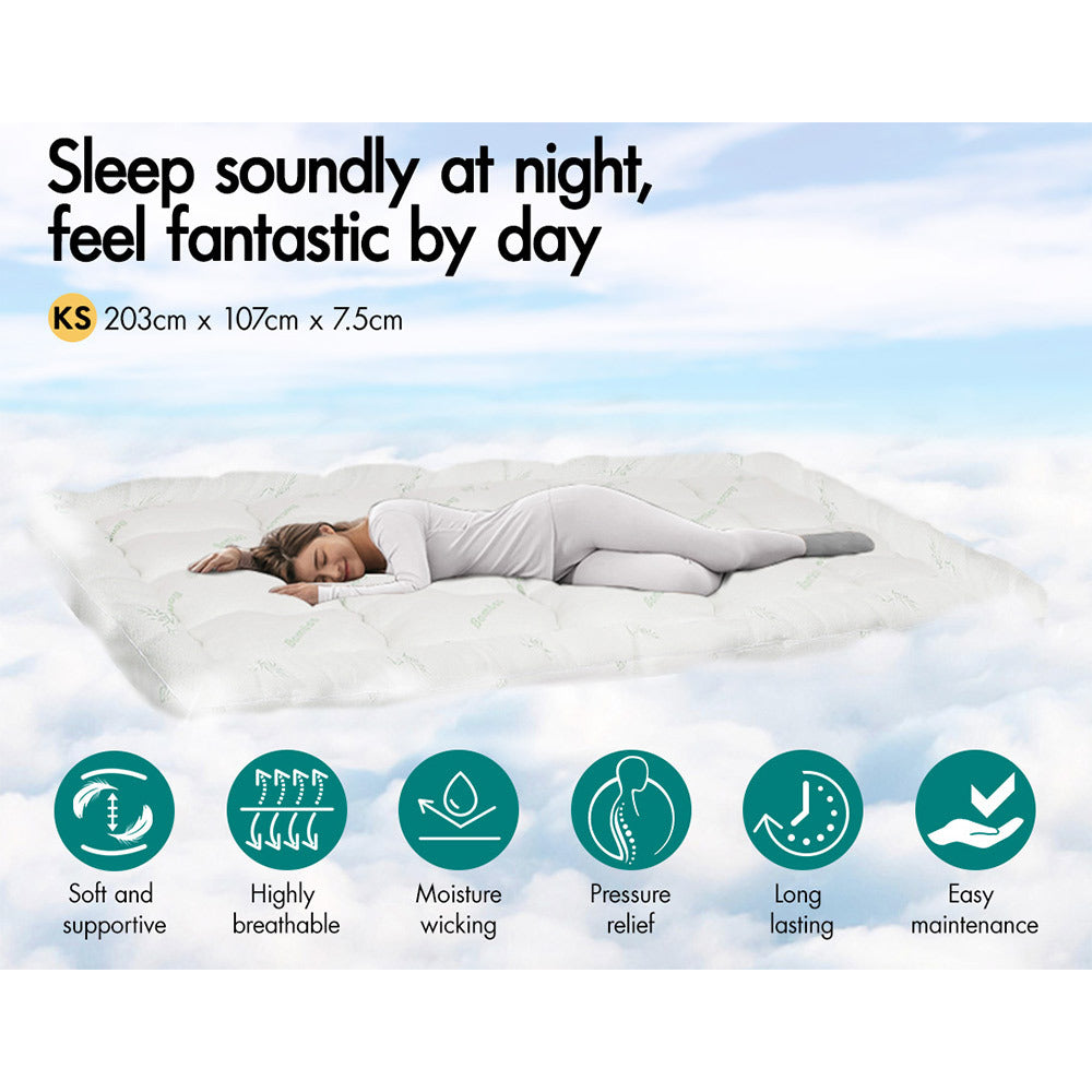 S.E. Bamboo Fibre Pillowtop Mattress Topper Underlay Pad Cover King Single 7.5cm