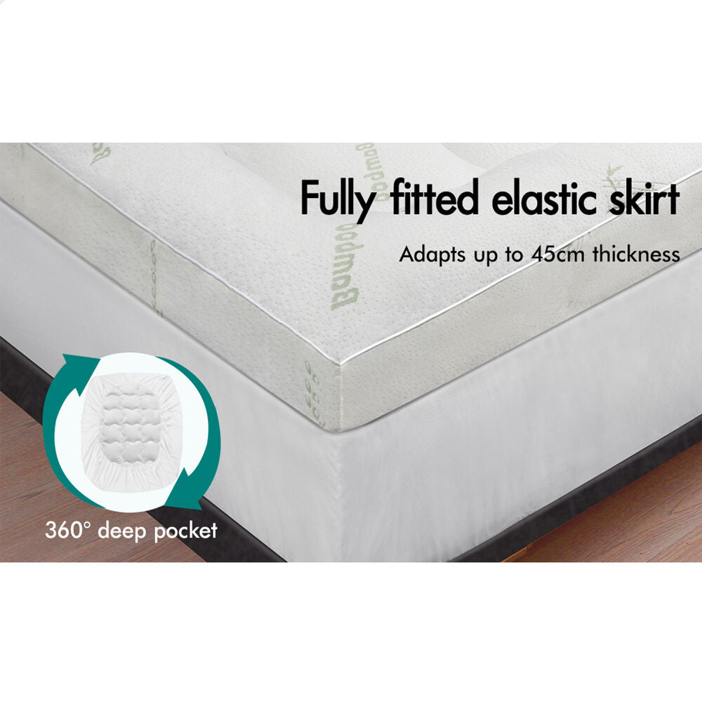 Filled with eco-friendly bamboo microfibre filling, our mattress topper brings comfort without odours and allergens. Plus, the naturally breathable and moisture-wicking cover is hypoallergenic. It's easy to enhance your comfort or upgrade the experience of an old mattress with our topper. The 45cm fitted skirt not only makes the topper stay firmly but also keeps smoothly attached to your mattress despite tossing and turning through the night, which decreases tangled mess in the morning.
