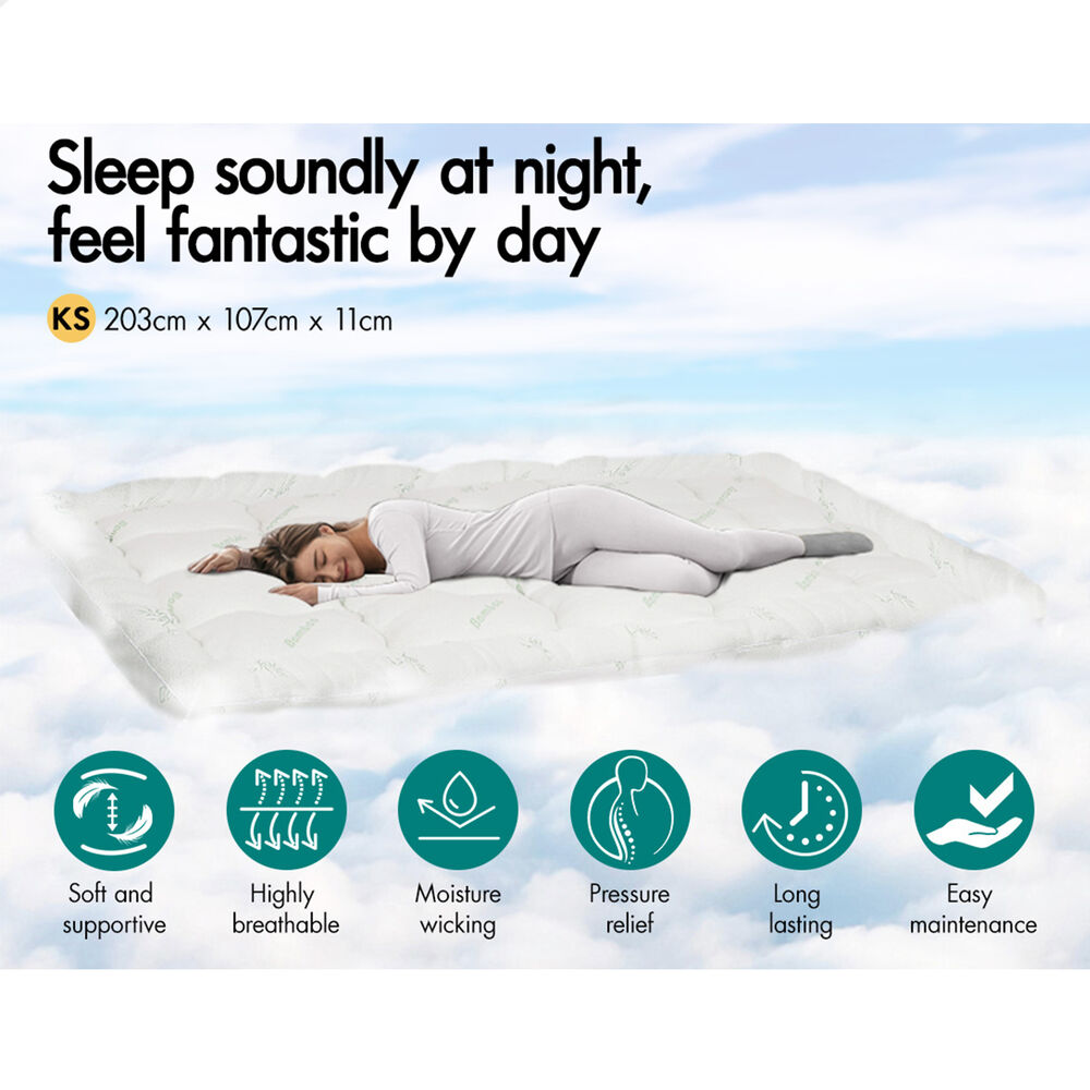 STARRY EUCALYPT Bamboo Fibre Pillowtop Mattress Topper Underlay Pad 11cm KS