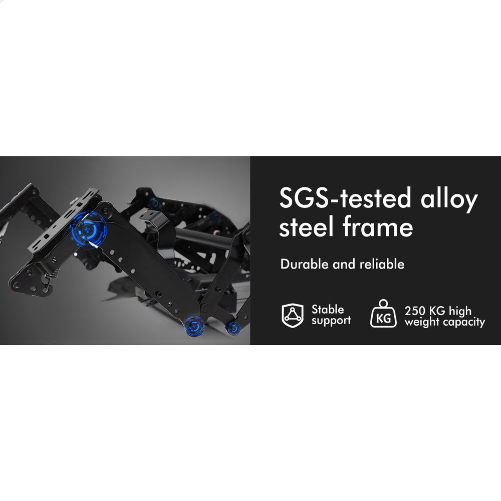 The sturdy construction of an SGS-tested alloy steel frame, heavy-duty springs, and superior-quality wood ensures the reliability and durability of the chair and provides a stable and supportive seating experience. The 3-layer backrest with lavish padding promises unparalleled coziness, while the upholstery, meticulously crafted from superior PU leather, guarantees exceptional longevity and hassle-free maintenance.