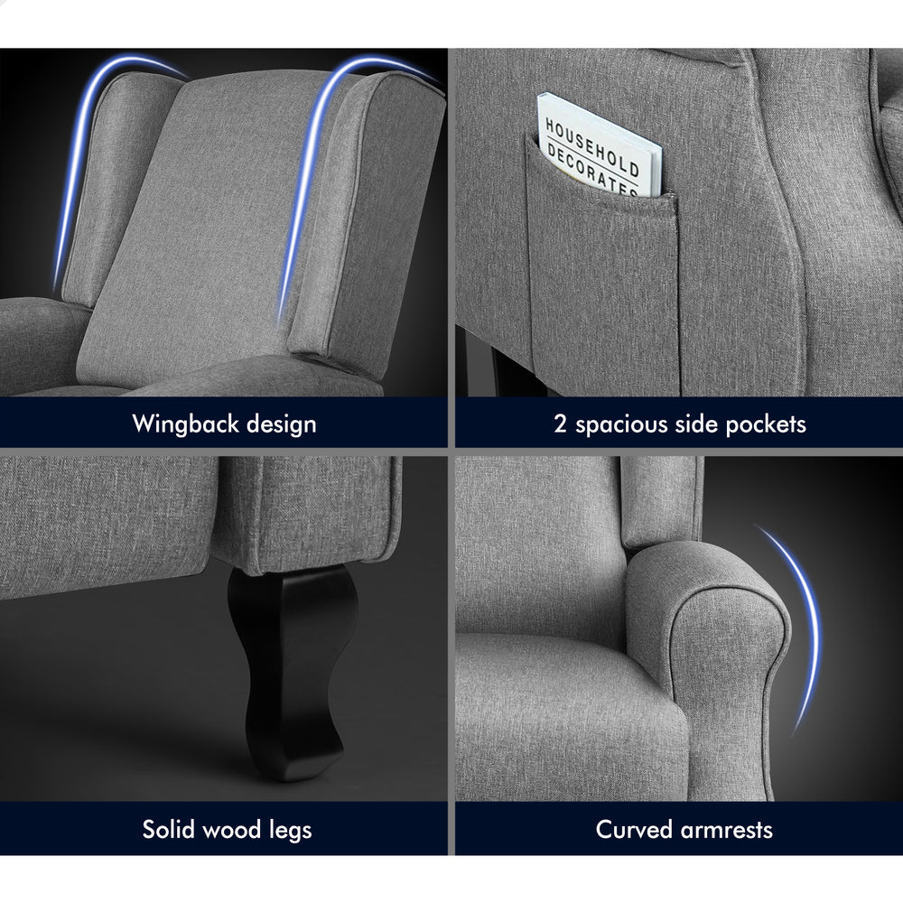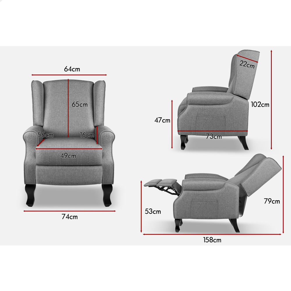 ALFORDSON Recliner Chair Armchair Accent Lounge Sofa Single Couch Fabric Grey