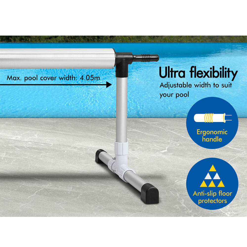 Steady & portable ââââ‚?Featuring a steady construction, our pool roller consists of a telescopic aluminium tube and stainless steel supports. It has two wheels on one side, ensuring easy movement when you want to transport the roller and cover.