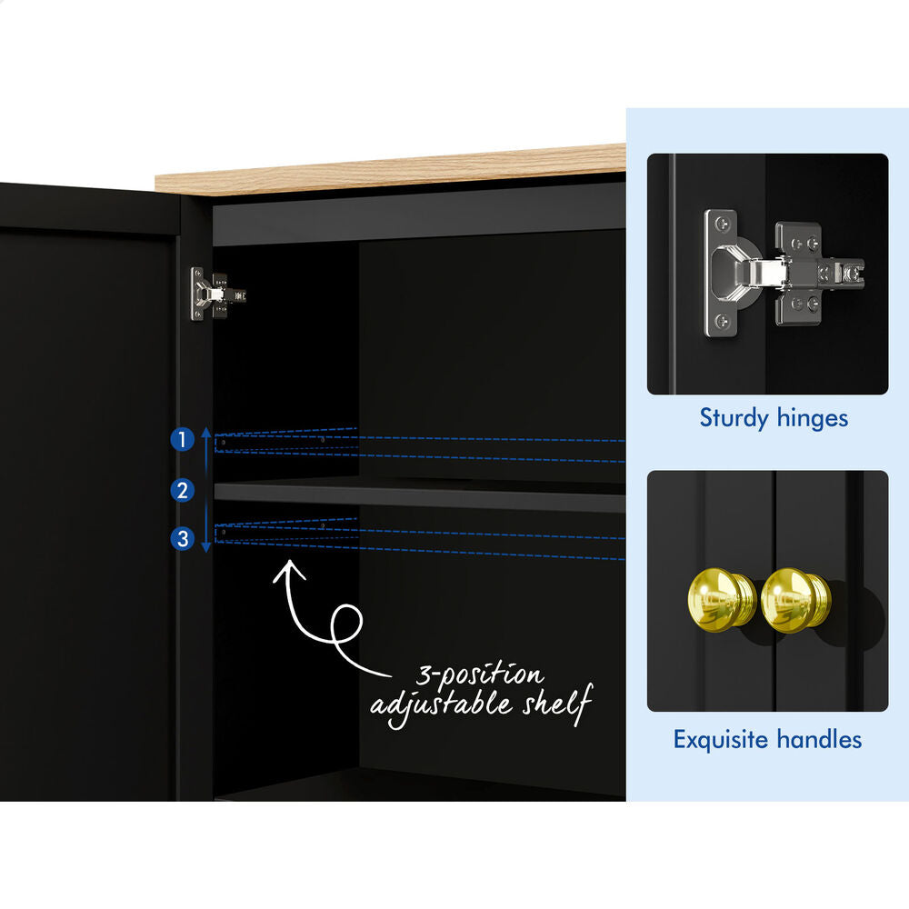 Smart Storage Solutions - Customize your storage with adjustable shelves, perfect for organizing everything from dinnerware to pantry essentials. The spacious tiers offer ample room for larger items, offering a versatile solution for your dining room, living room, or even as a stylish entryway console.