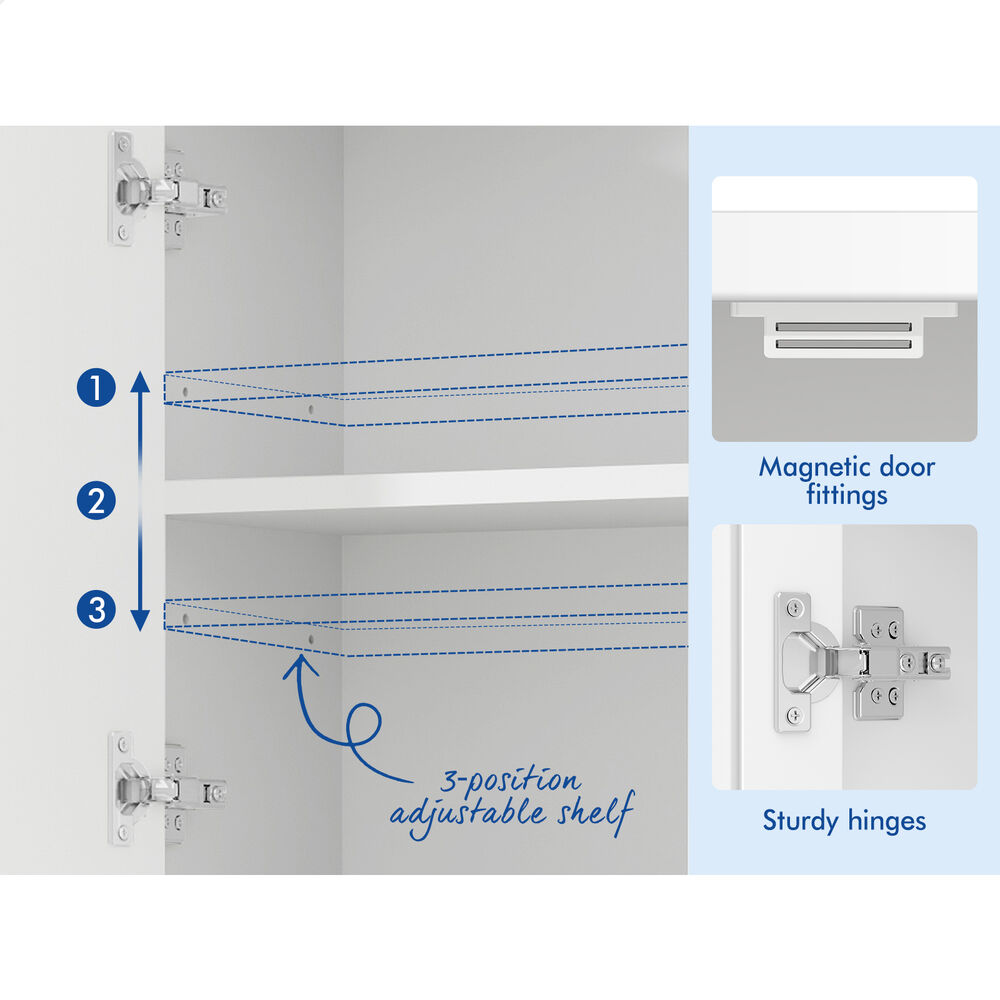 * Two removable and adjustable shelves