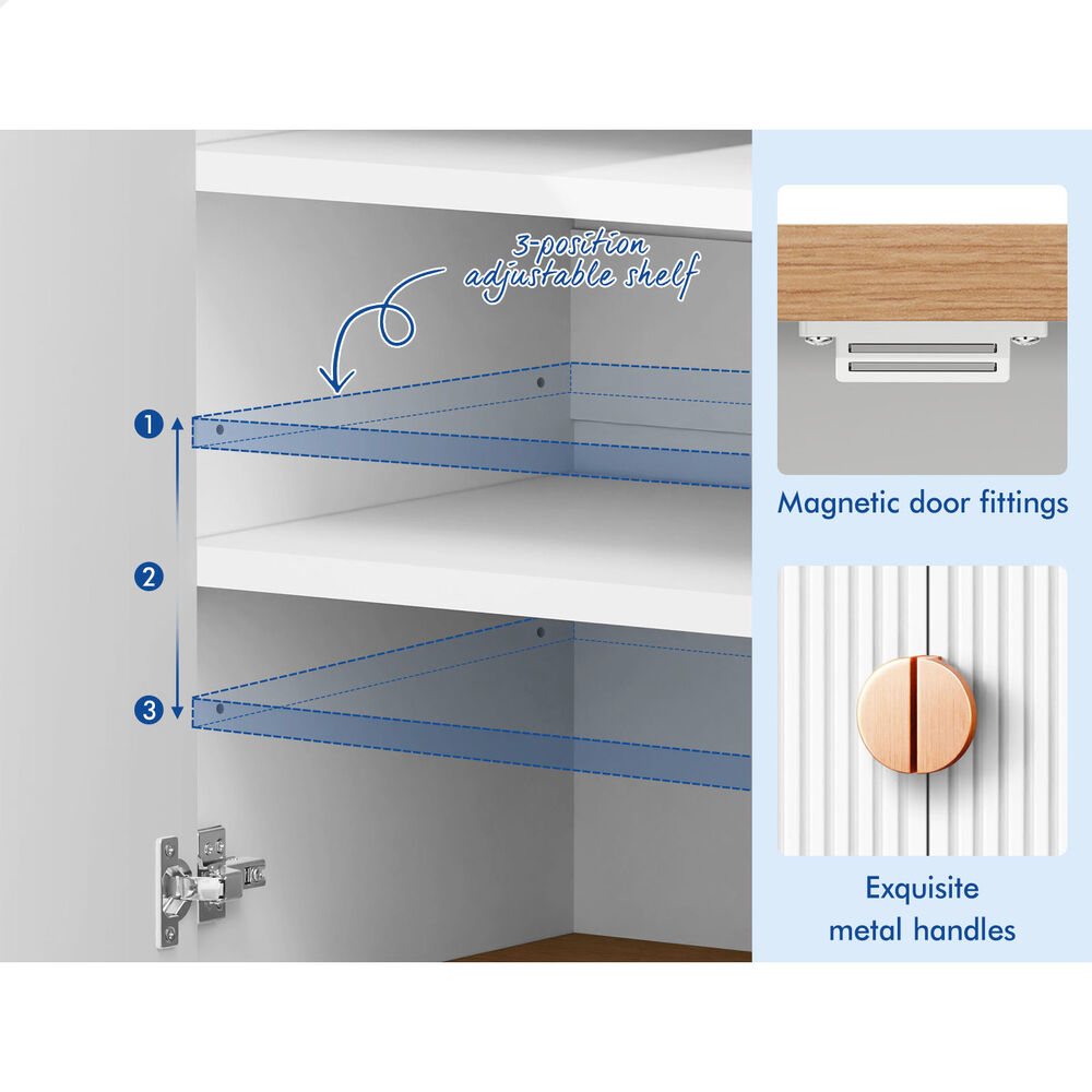 Versatile Design for Any Space - Featuring a two-tone color scheme and unique fluted doors, this sideboard seamlessly blends with modern and rustic interiors. Its versatile design allows it to complement a variety of décor styles, making it a perfect fit for any room.