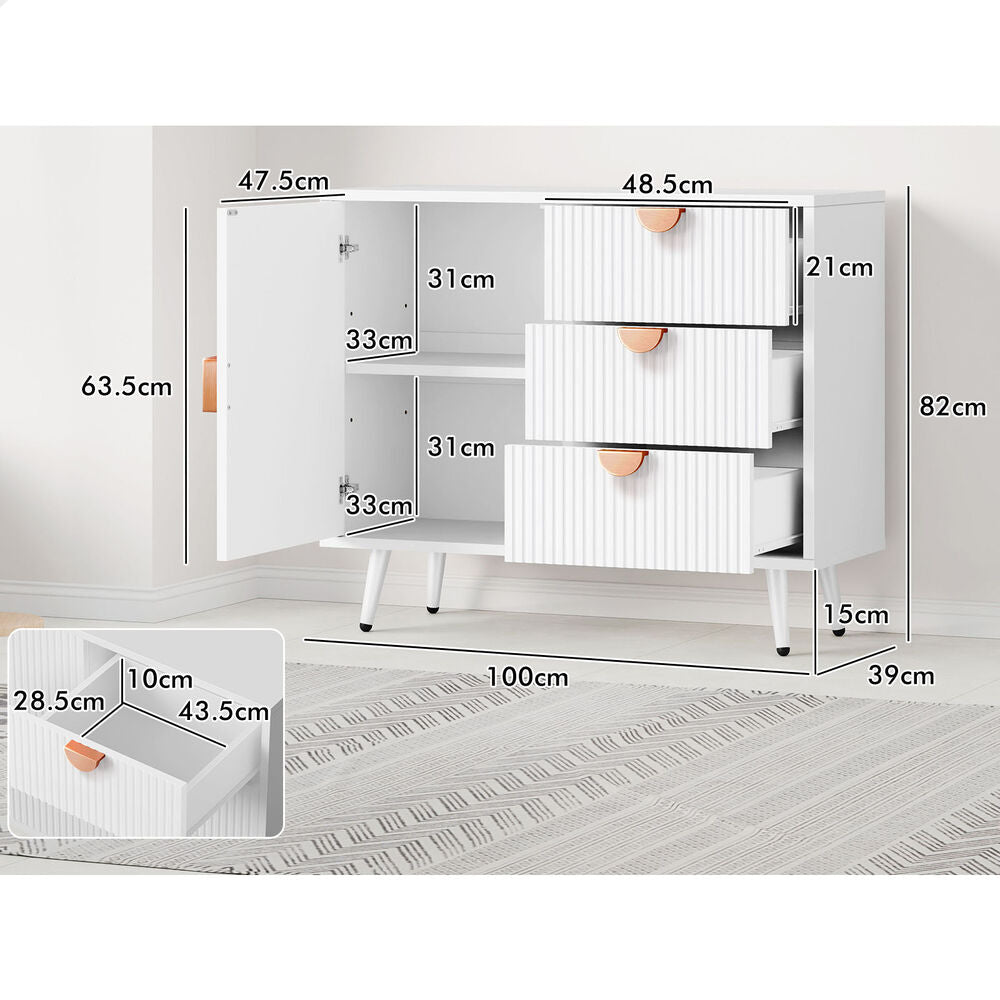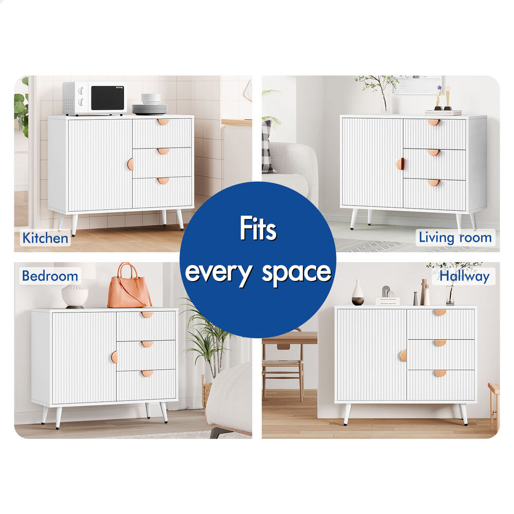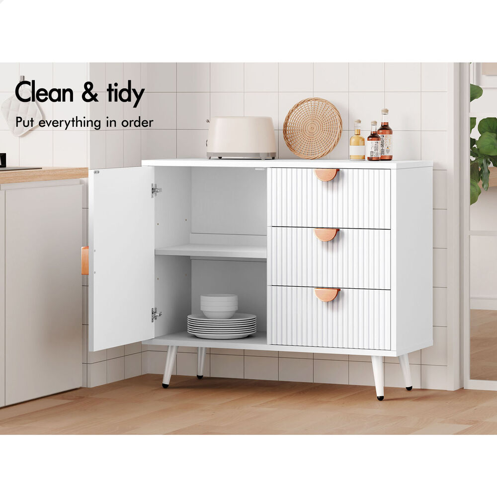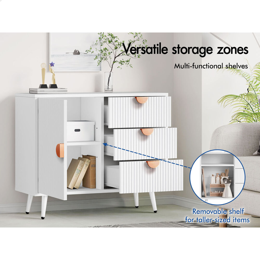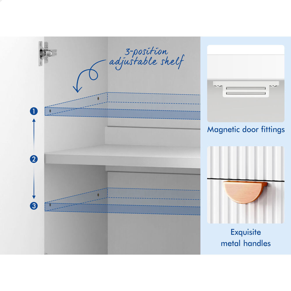Versatile Design for Any Space - Featuring a monochrome color scheme and unique fluted doors, this sideboard seamlessly blends with modern and rustic interiors. Its versatile design allows it to complement a variety of d ecor styles, making it a perfect fit for any room.