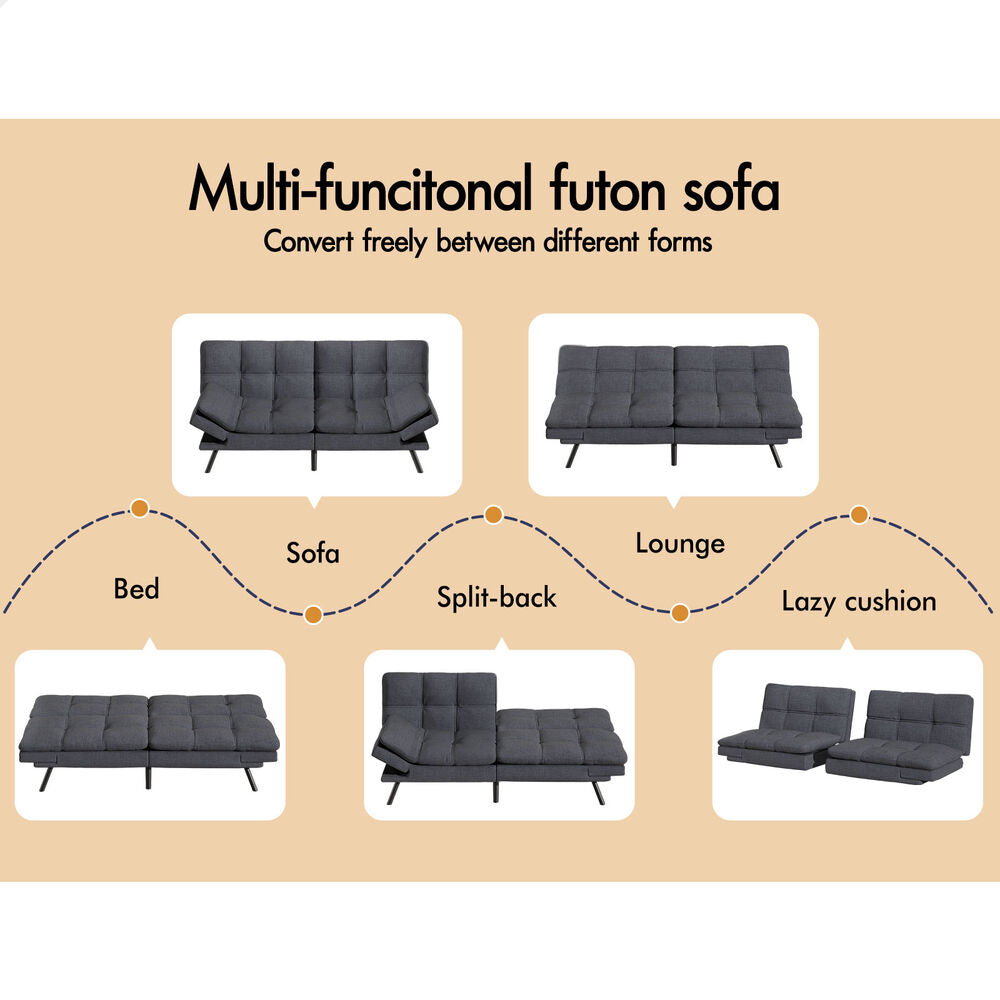 ALFORDSON Sofa Bed Couch 3 Seater Lounge Recliner Fabric Grey