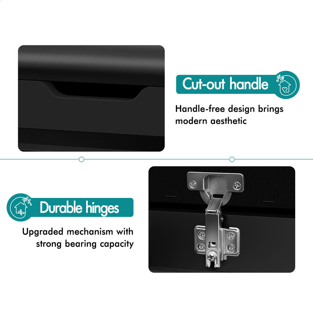 Crafted from superior E1 grade and 15mm thick particle board, this shoe cabinet bench is designed to be highly durable. Unlike some other sellers, we have no compromise on materials used. Instead of flimsy paper finish, our shoe bench is well made with melamine finish. It is not only easy to maintain and clean, but also long lasting and sturdy. Made of premium PU leather and high-density foam, the seat cushion is a cozy spot for comfortable sitting experience.