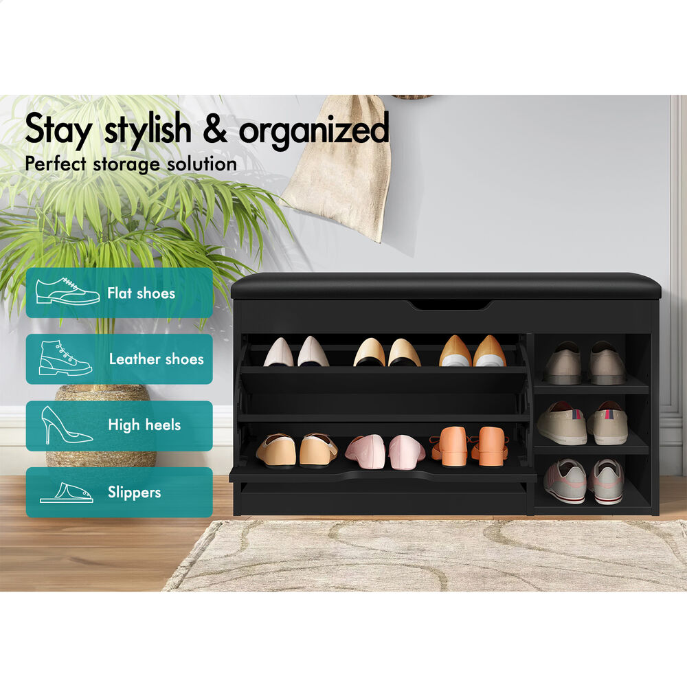 ALFORDSON Shoe Cabinet Bench Rack 18 Pairs Black